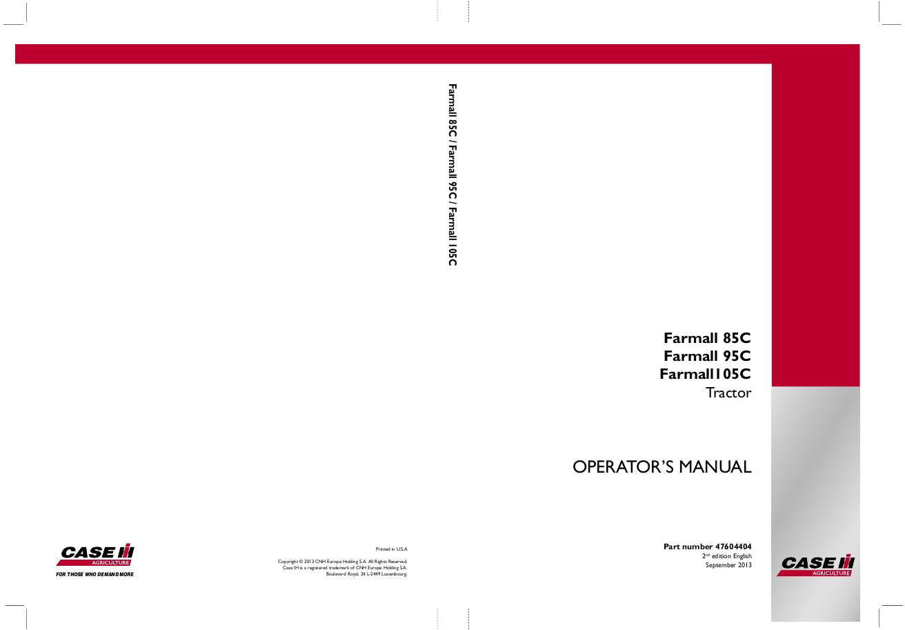 It is an Complete Factory original factory Operator's Manual For Case IH Tractor Farmall 85C 95C 05C Operator’s. We Offers Manual HIGH quality images, diagrams, instructions to help you to operate. This document is printable, without restrictions, contains searchable text, bookmarks, crosslinks for easy navigation.