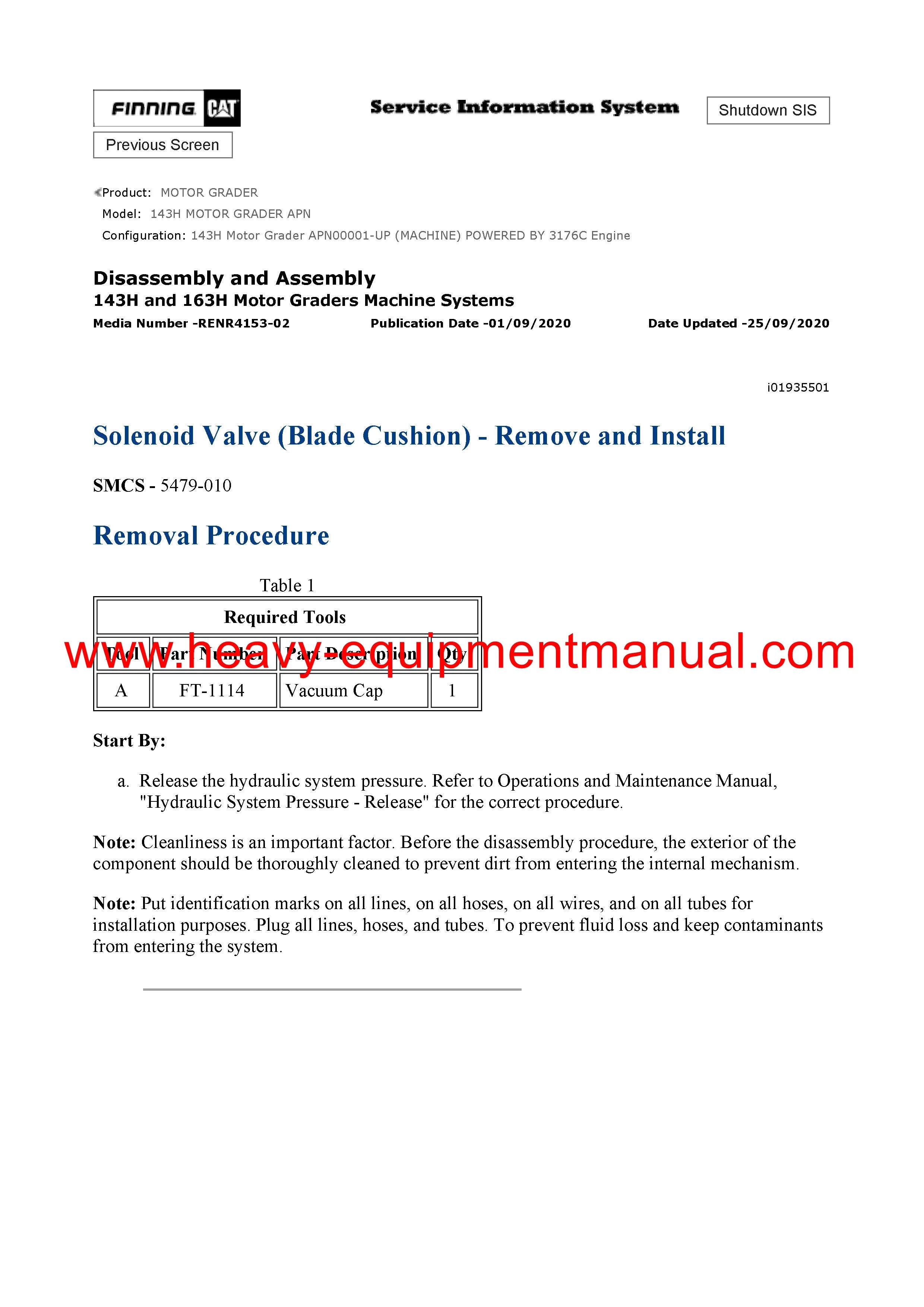 Caterpillar 140H MOTOR GRADER Disassembly and Assembly Manual