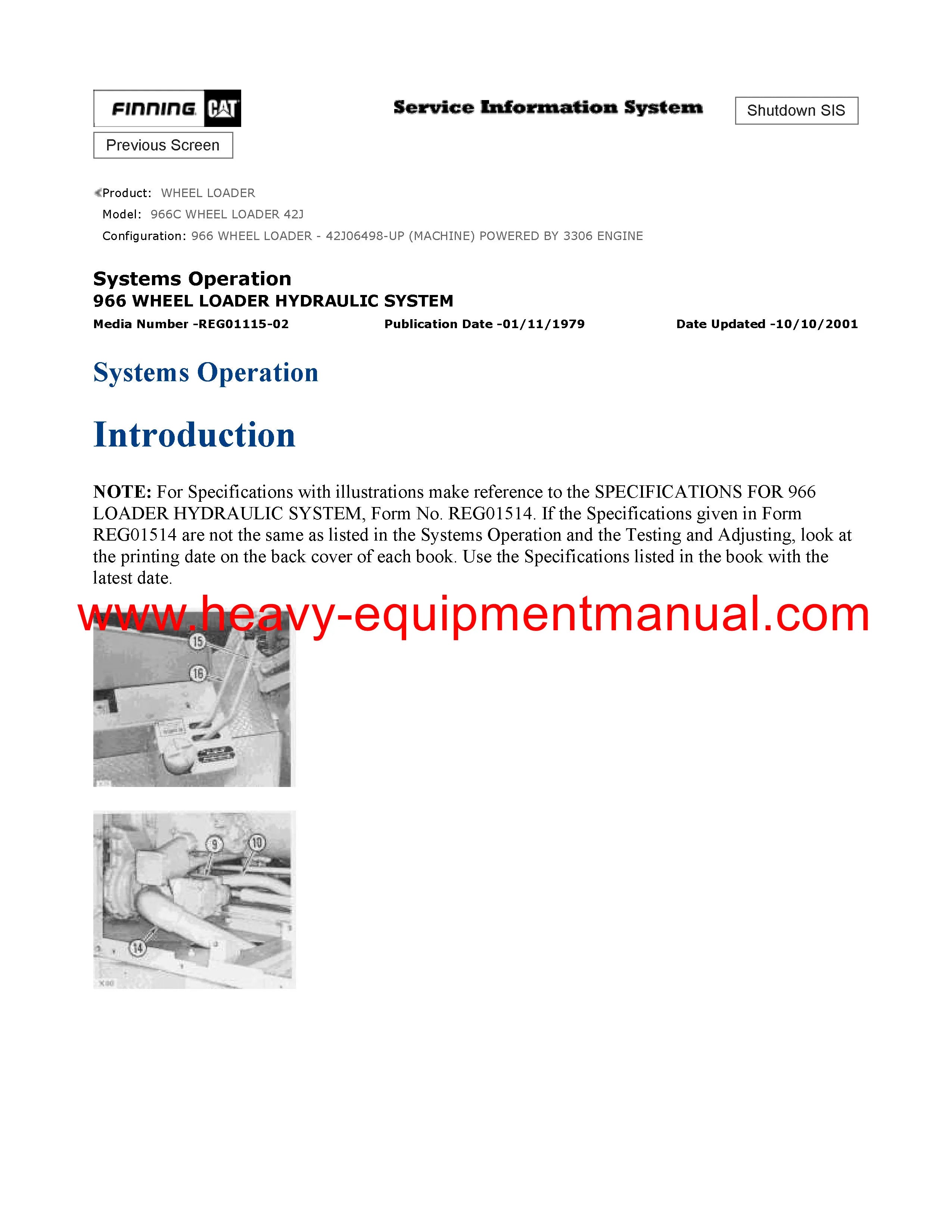 It is Complete Original Factory for Caterpillar 966C WHEEL LOADER. Covers all the service and repair information about Caterpillar 966C WHEEL LOADER. The information in this manual covers everything you need to know when you want to service and repair Caterpillar 966C WHEEL LOADER.