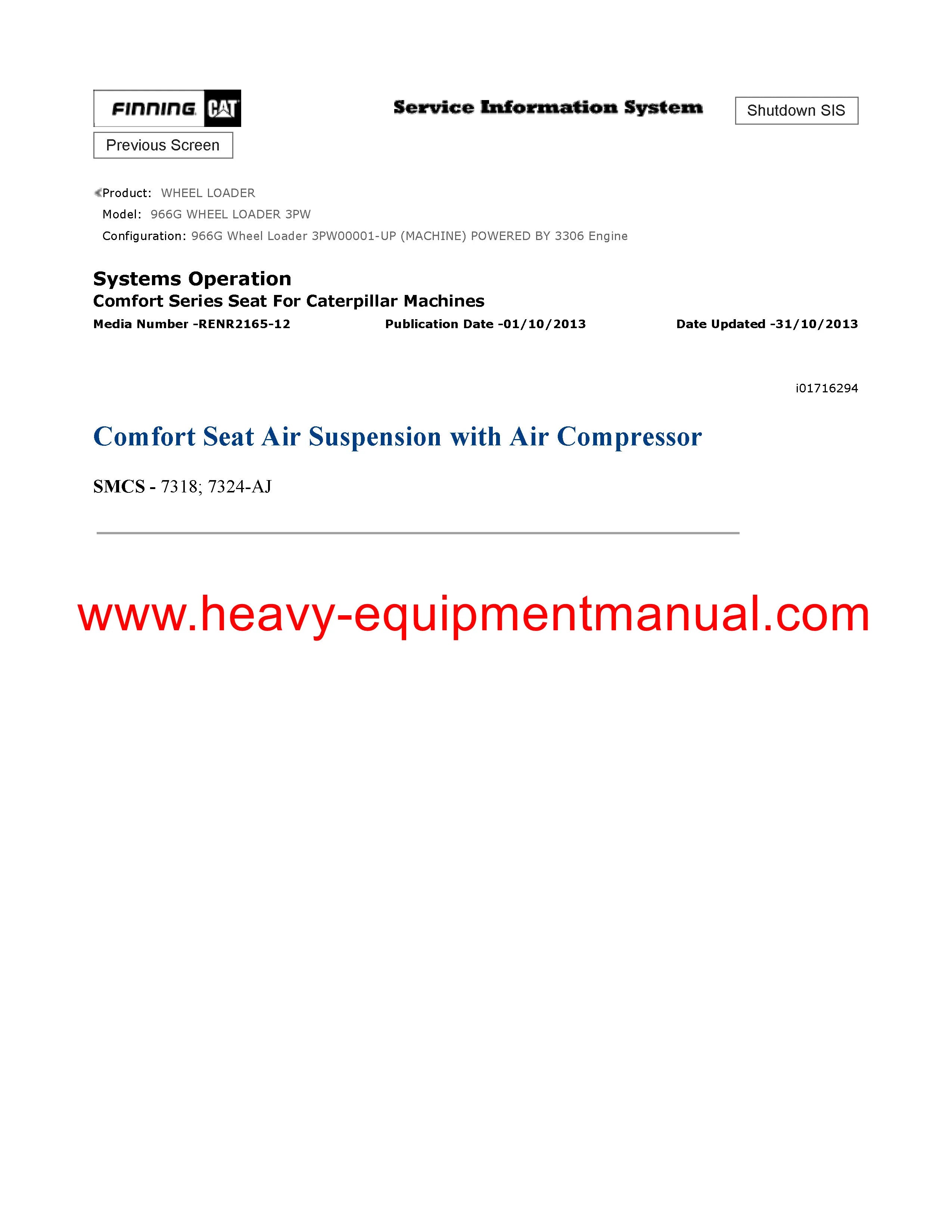 It is Complete Original Factory for Caterpillar 966G WHEEL LOADER. Covers all the service and repair information about Caterpillar 966G WHEEL LOADER. The information in this manual covers everything you need to know when you want to service and repair Caterpillar 966G WHEEL LOADER.