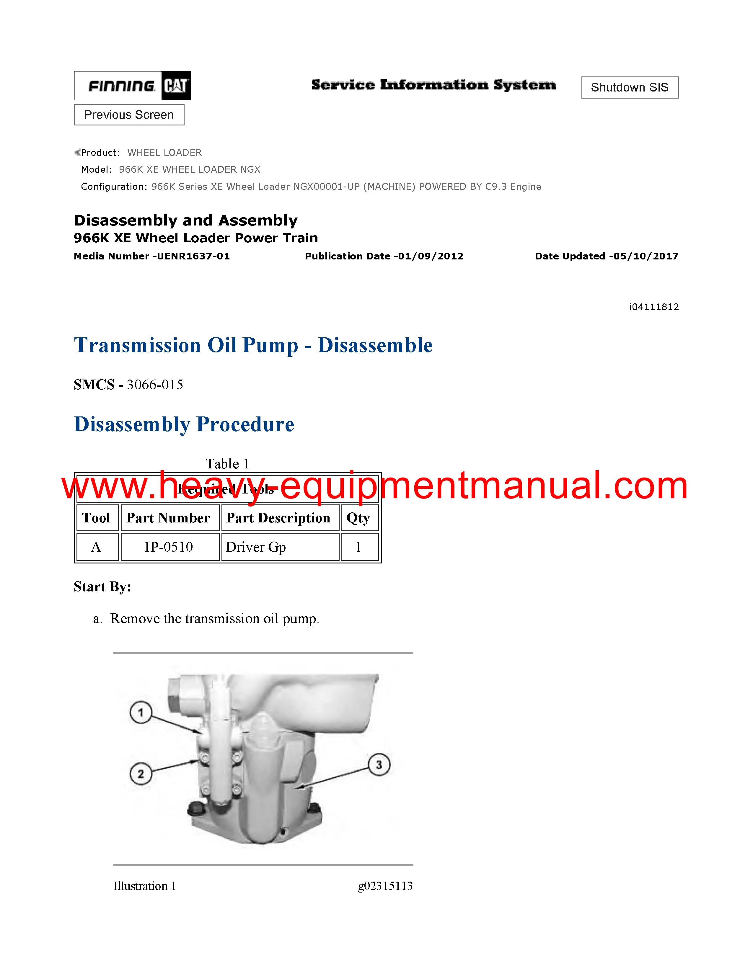 It is Complete Original Factory for Caterpillar 966K XE WHEEL LOADER. Covers all the service and repair information about Caterpillar 966K XE WHEEL LOADER. The information in this manual covers everything you need to know when you want to service and repair Caterpillar 966K XE WHEEL LOADER.