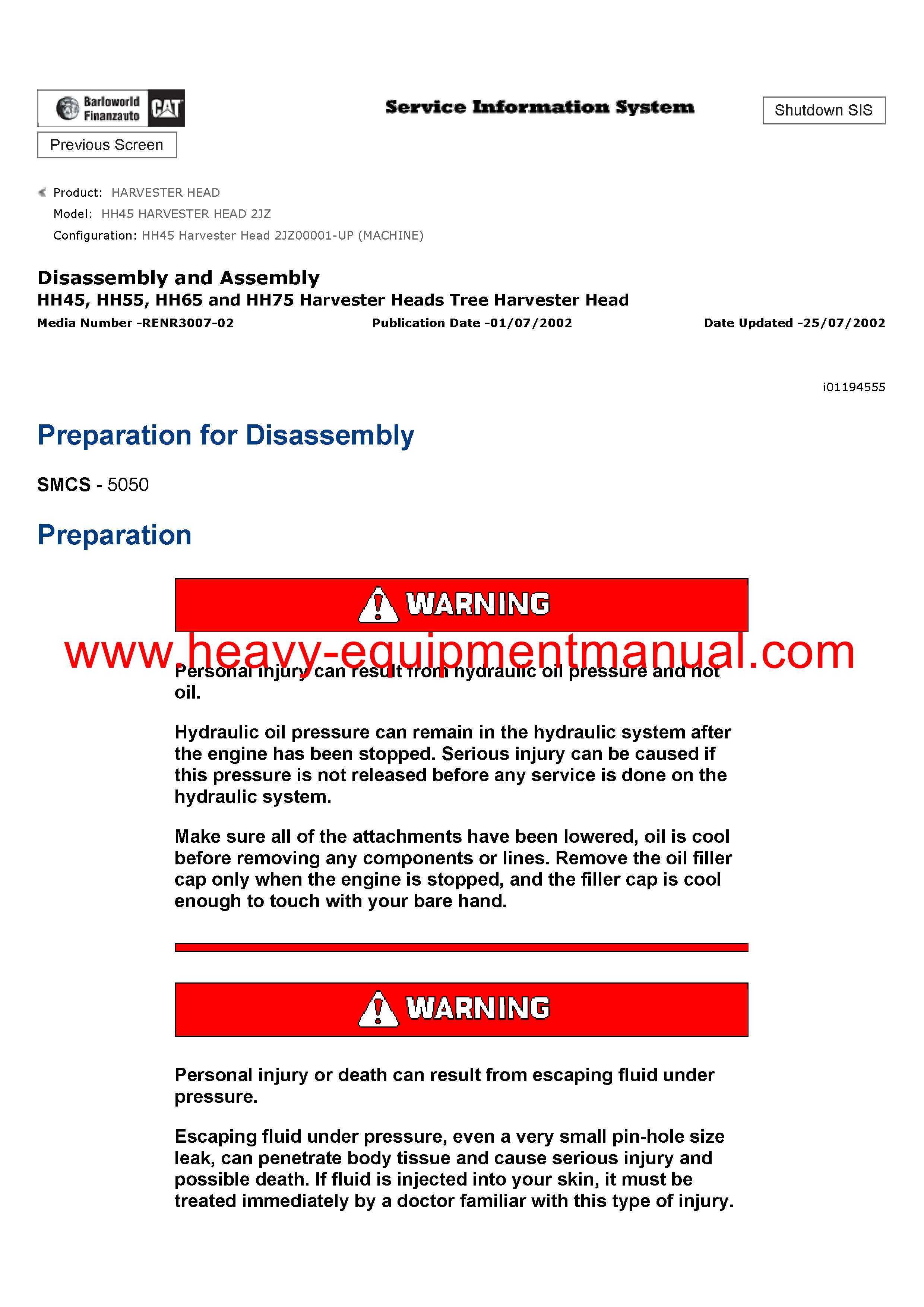 It is Complete Original Factory for Caterpillar HH45 HARVESTER HEAD. Covers all the service and repair information about Caterpillar HH45 HARVESTER HEAD. The information in this manual covers everything you need to know when you want to service and repair Caterpillar HH45 HARVESTER HEAD.
