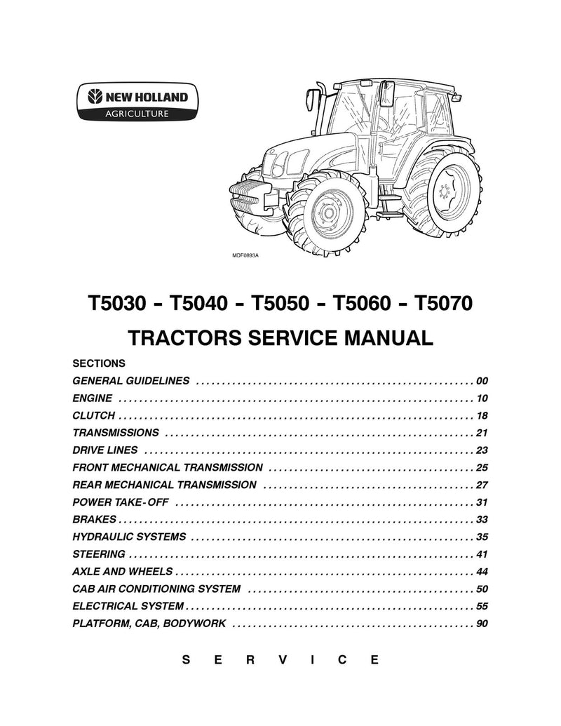 It is Complete Original Factory for New Holland T5030, T5040, T5050, T5060, T5070 Tractor. Covers all the service and repair information about New Holland T5030, T5040, T5050, T5060, T5070 Tractor. The information in this manual covers everything you need to know when you want to service and repair New Holland T5030, T5040, T5050, T5060, T5070 Tractor.