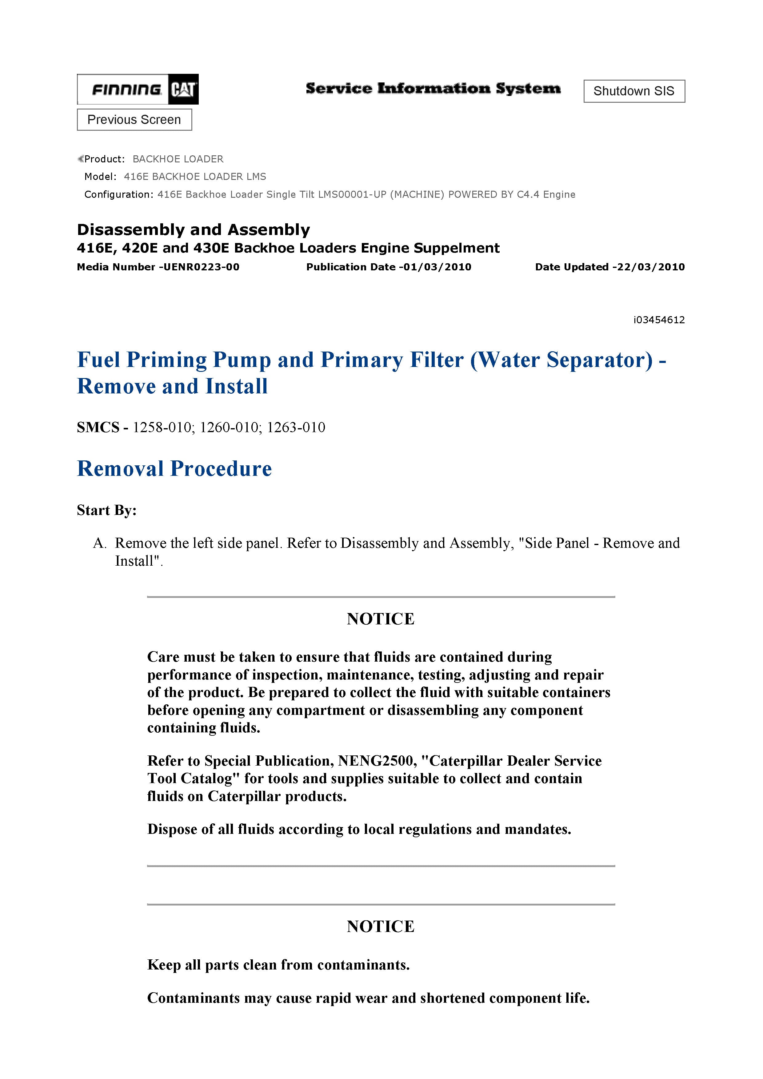 It is Complete Original Factory for CATERPILLAR 416E BACKHOE LOADER. Covers all the service and repair information about CATERPILLAR 416E BACKHOE LOADER. The information in this manual covers everything you need to know when you want to service and repair CATERPILLAR 416E BACKHOE LOADER.