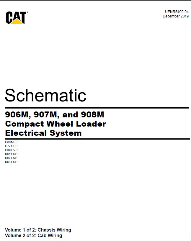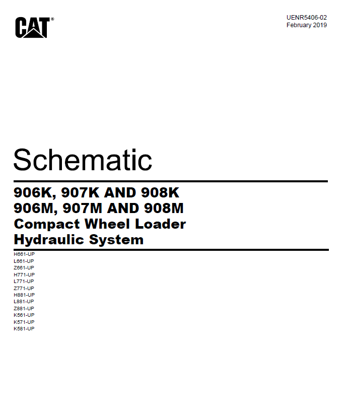 CATERPILLAR 908M COMPACT WHEEL LOADER K58 HYDRAULIC AND ELECTRIC SCHEMATIC MANUAL