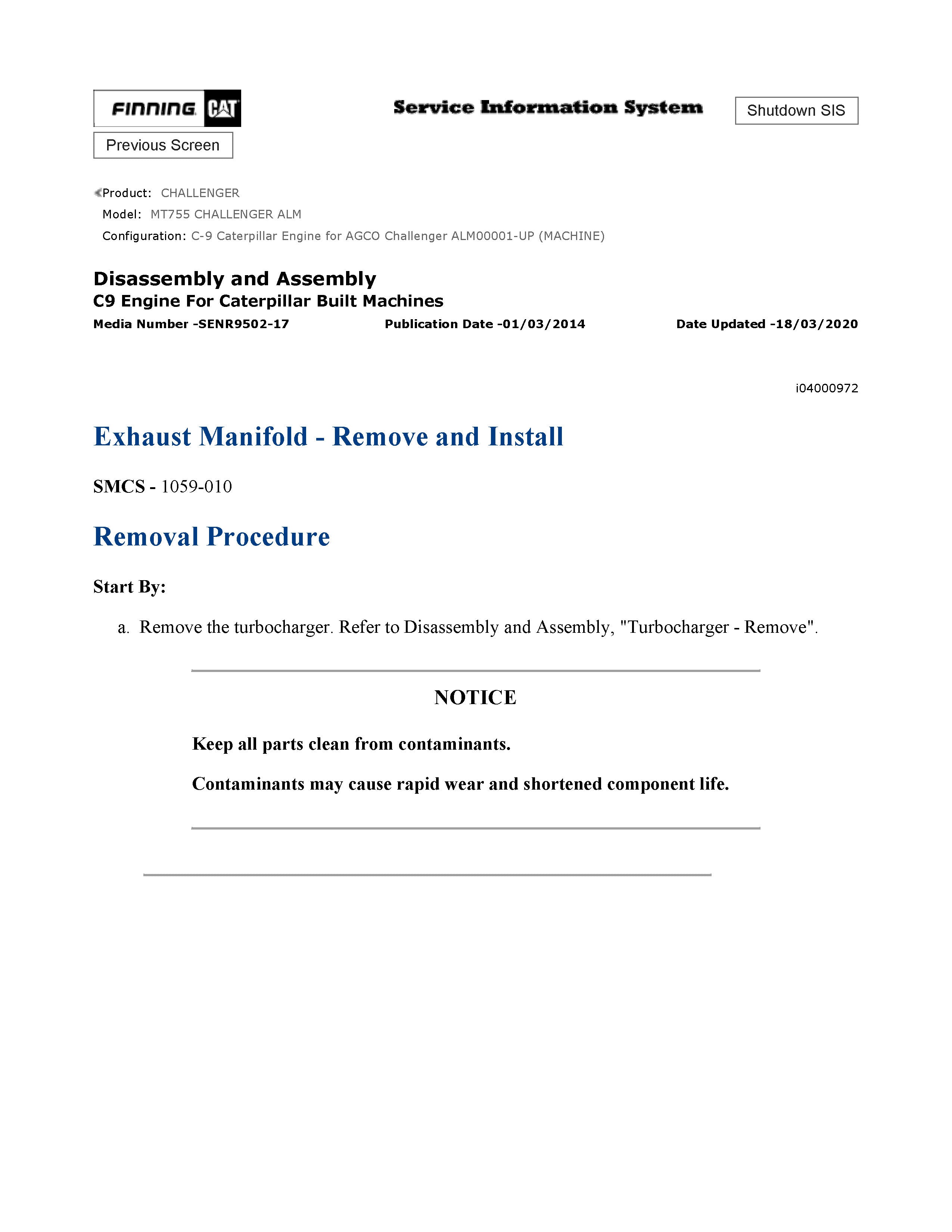 It is Complete Original Factory for Caterpillar MT755 CHALLENGER. Covers all the service and repair information about Caterpillar MT755 CHALLENGER. The information in this manual covers everything you need to know when you want to service and repair Caterpillar MT755 CHALLENGER.