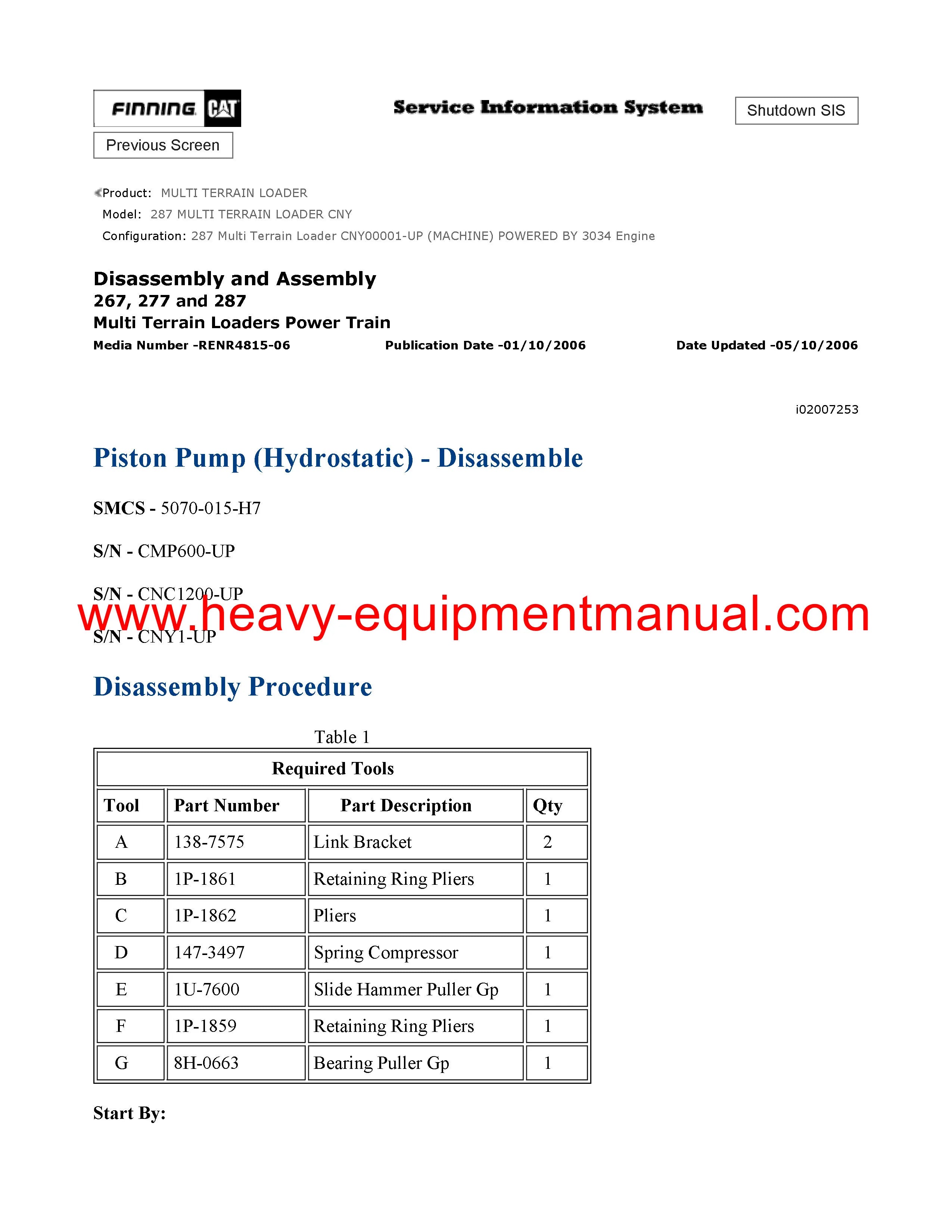 Caterpillar 267, 277 and 287 Multi Terrain Loader Disassembly and Assembly