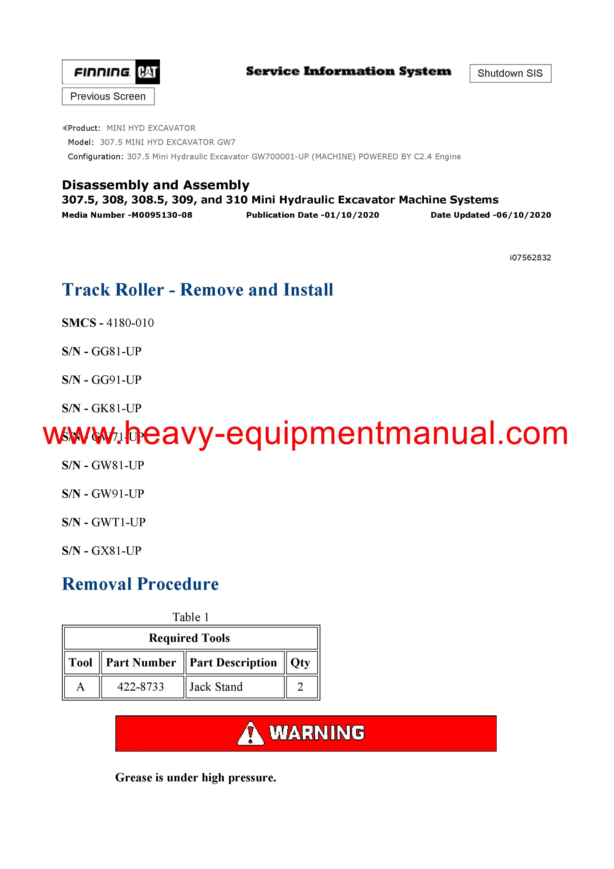 It is Complete Original Factory for CATERPILLAR 307.5 MINI HYD EXCAVATOR. Covers all the service and repair information about CATERPILLAR 307.5 MINI HYD EXCAVATOR. The information in this manual covers everything you need to know when you want to service and repair CATERPILLAR 307.5 MINI HYD EXCAVATOR.