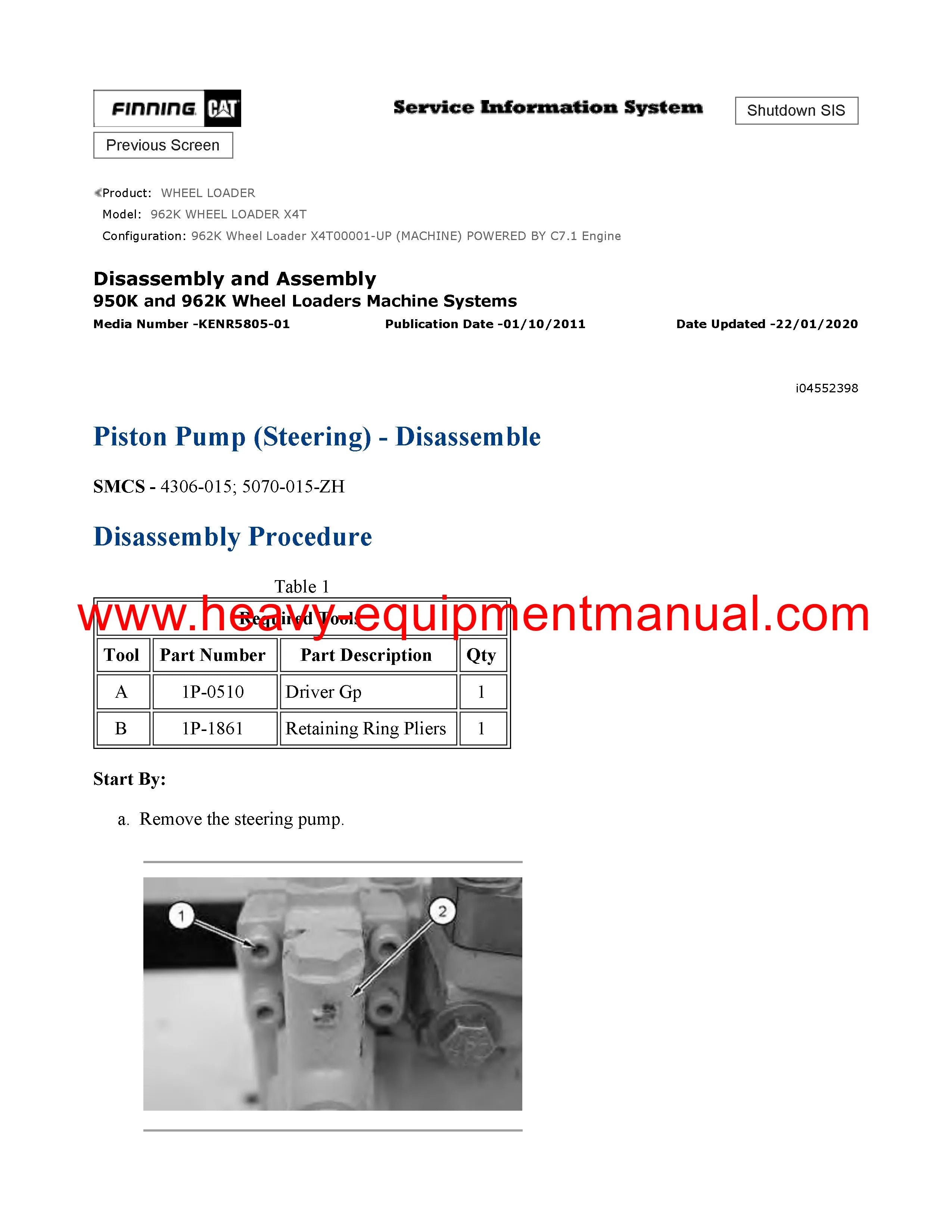 It is Complete Original Factory for Caterpillar 962K WHEEL LOADER covers all the service and repair information about Caterpillar 962K WHEEL LOADER. The information in this manual covers everything you need to know when you want to repair Caterpillar 962K WHEEL LOADER.