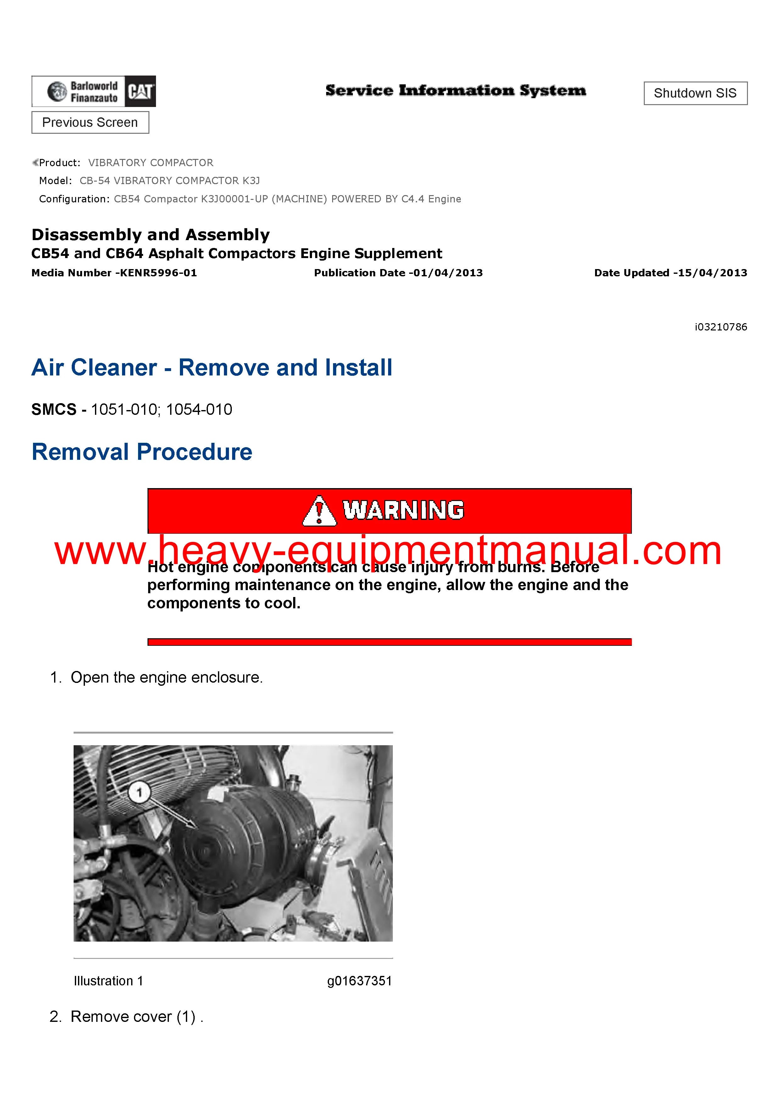 It is Complete Original Factory for Caterpillar CB-54 VIBRATORY COMPACTOR covers all the service and repair information about Caterpillar CB-54 VIBRATORY COMPACTOR. The information in this manual covers everything you need to know when you want to repair Caterpillar CB-54 VIBRATORY COMPACTOR.