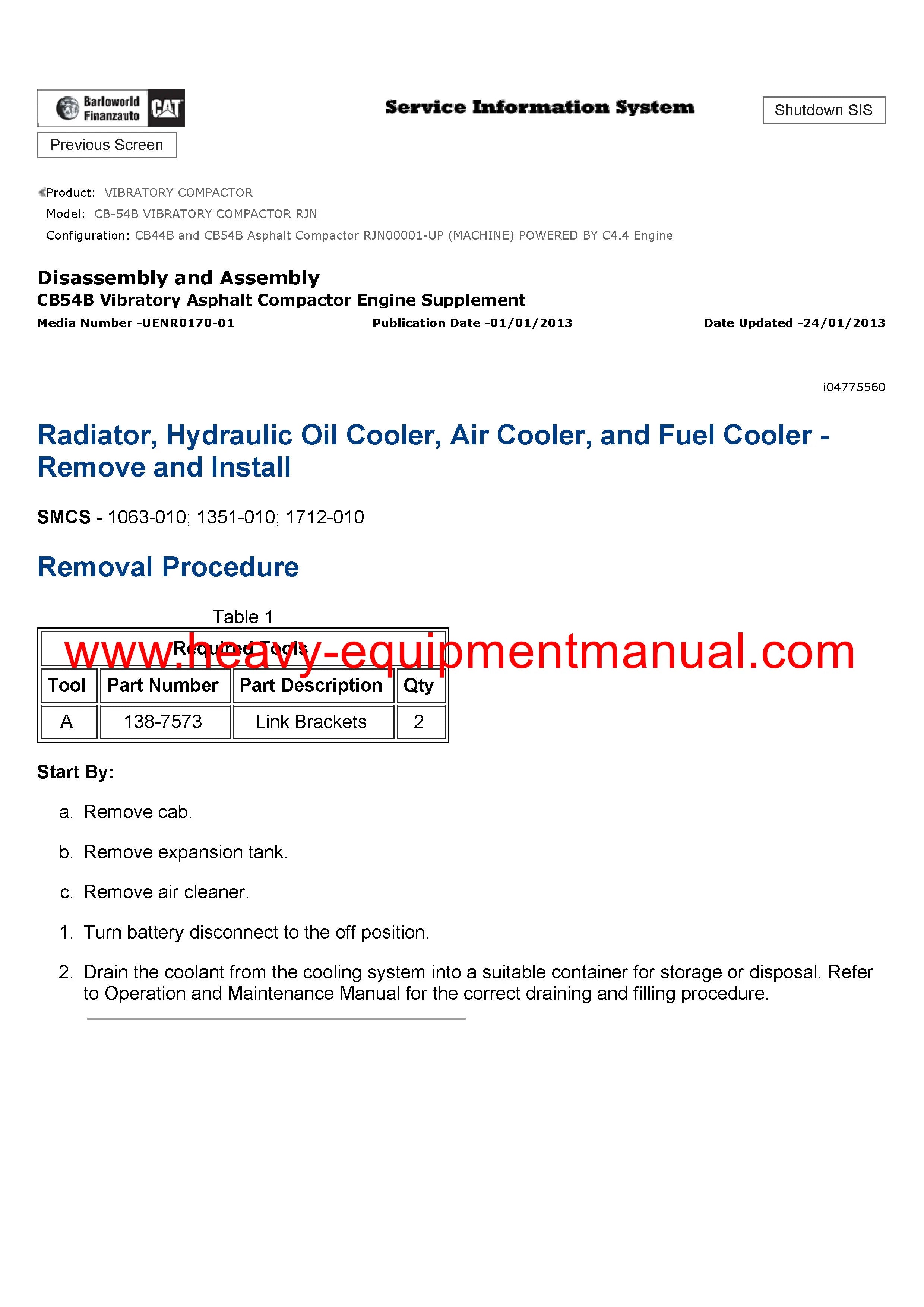 It is Complete Original Factory for Caterpillar CB-54B VIBRATORY COMPACTOR covers all the service and repair information about Caterpillar CB-54B VIBRATORY COMPACTOR. The information in this manual covers everything you need to know when you want to repair Caterpillar CB-54B VIBRATORY COMPACTOR.