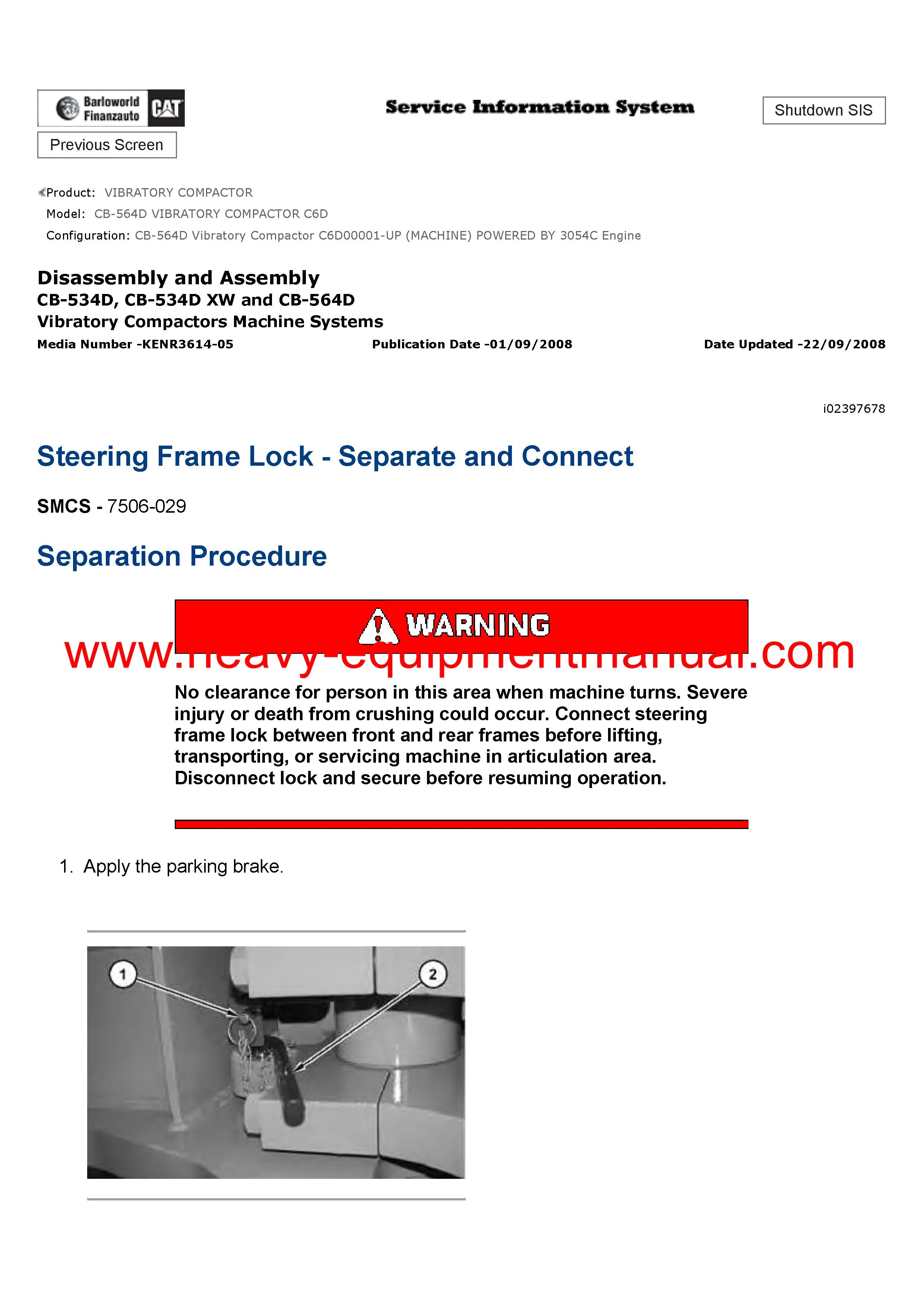 It is Complete Original Factory for Caterpillar CB-564D VIBRATORY COMPACTOR covers all the service and repair information about Caterpillar CB-564D VIBRATORY COMPACTOR. The information in this manual covers everything you need to know when you want to repair Caterpillar CB-564D VIBRATORY COMPACTOR.