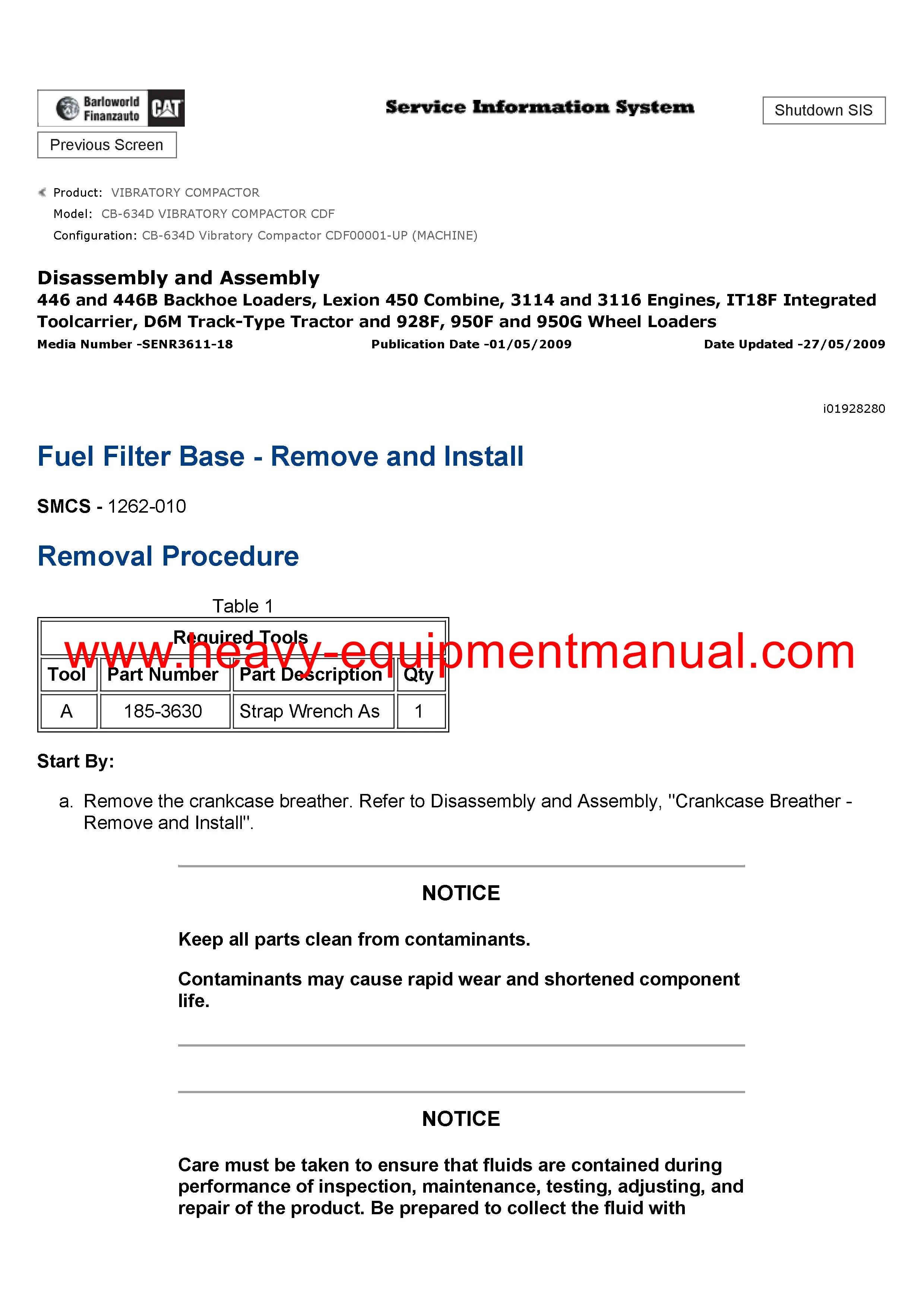 It is Complete Original Factory for Caterpillar CB-634D VIBRATORY COMPACTOR covers all the service and repair information about Caterpillar CB-634D VIBRATORY COMPACTOR. The information in this manual covers everything you need to know when you want to repair Caterpillar CB-634D VIBRATORY COMPACTOR.