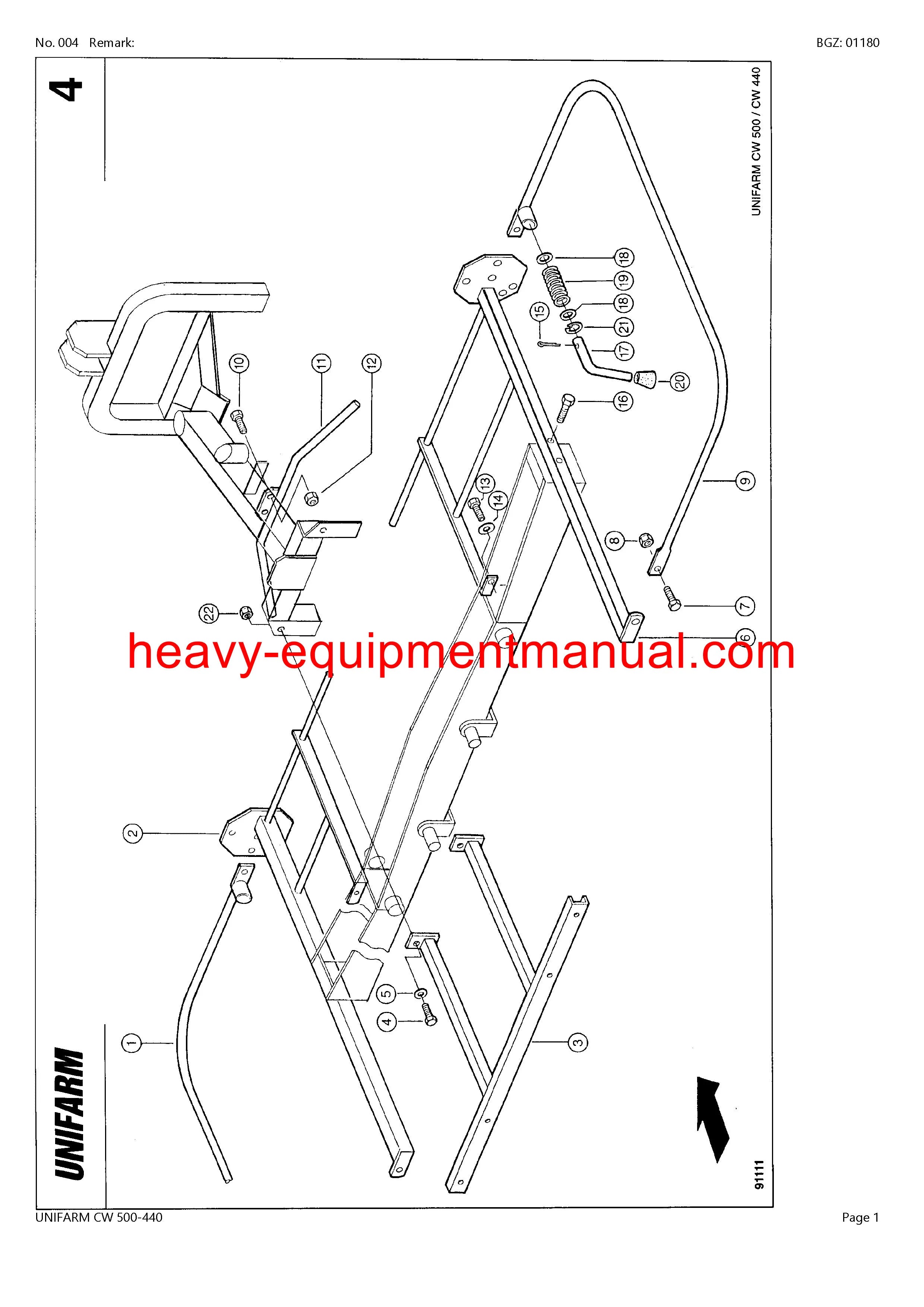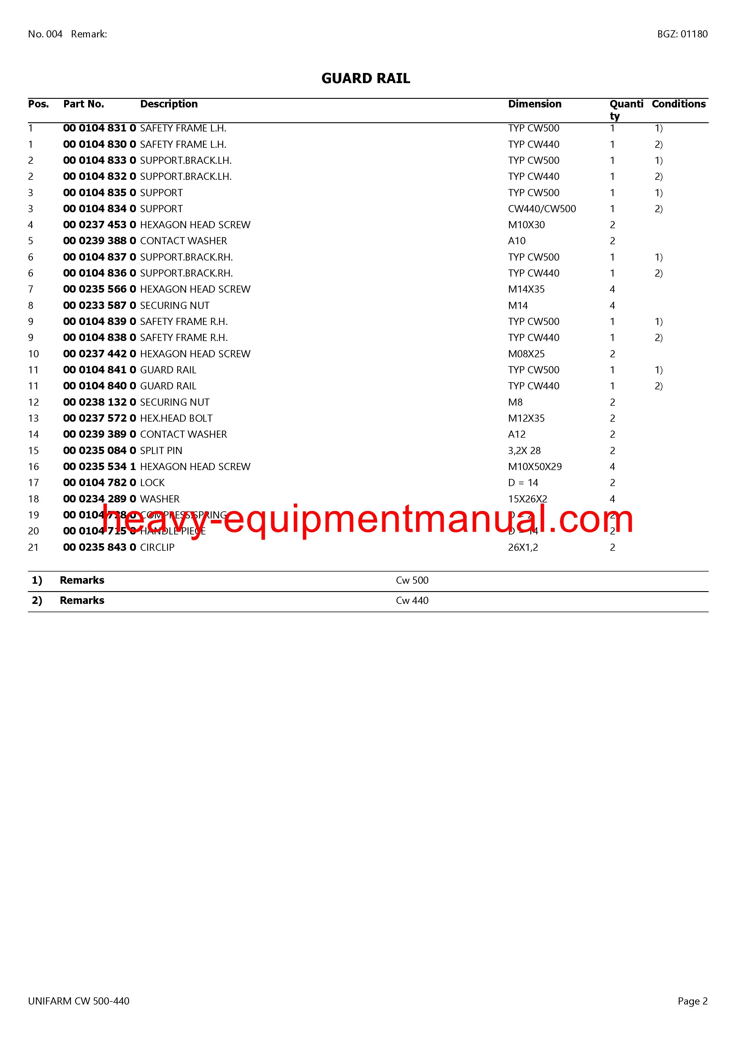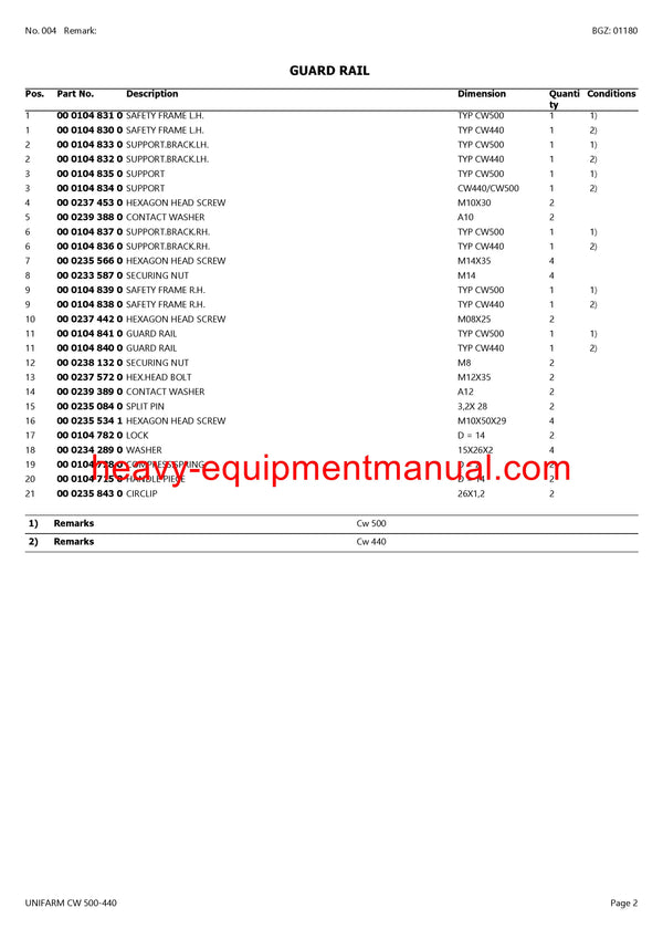 CLAAS UNIFARM CW 500-440 TEDDER PARTS CATALOG MANUAL SN 47301001-47399999