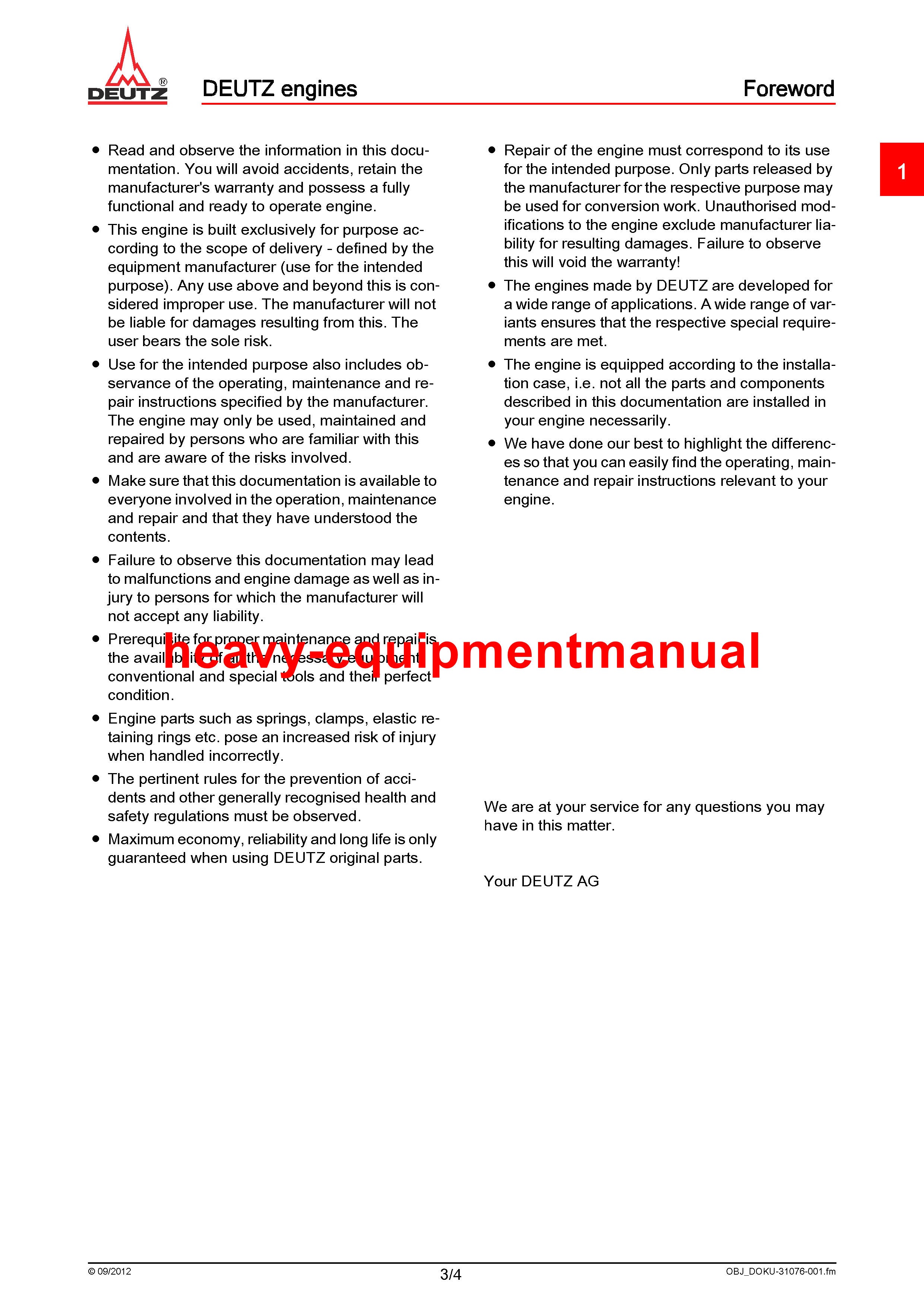 Download Deutz Engine TD 3.6 L4 TCD3.6 L4 Workshop Manual