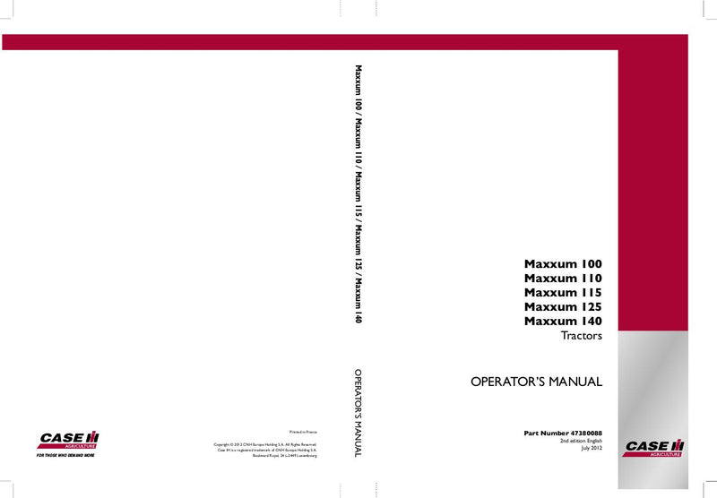 Download Case IH Tractor Maxxum 110 120 130 115 125 140 Operator’s Manual 47380088