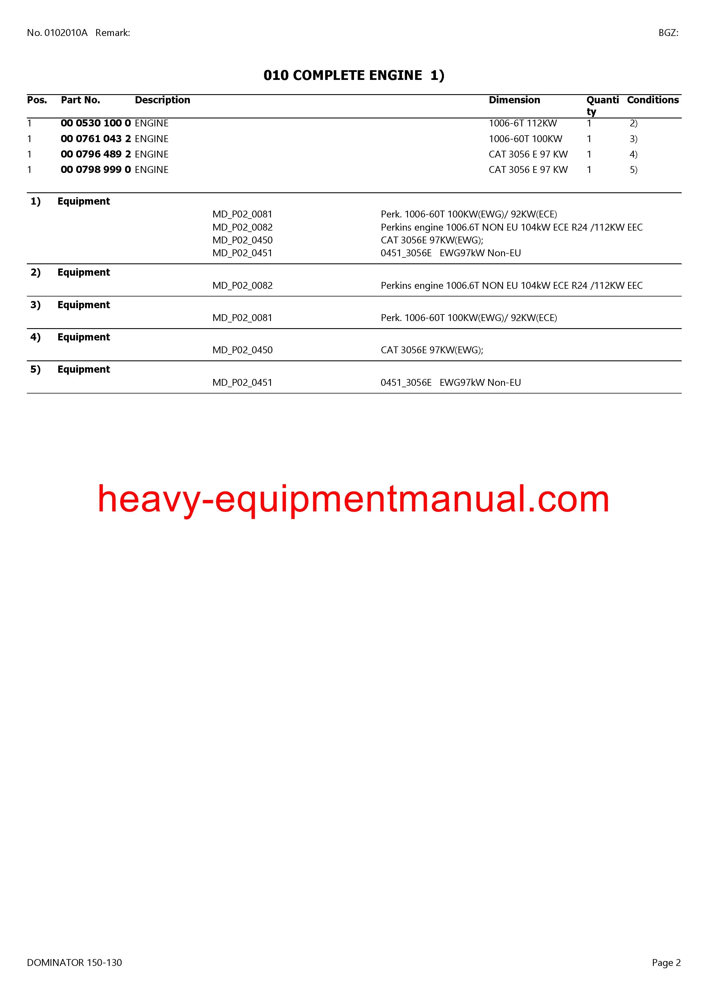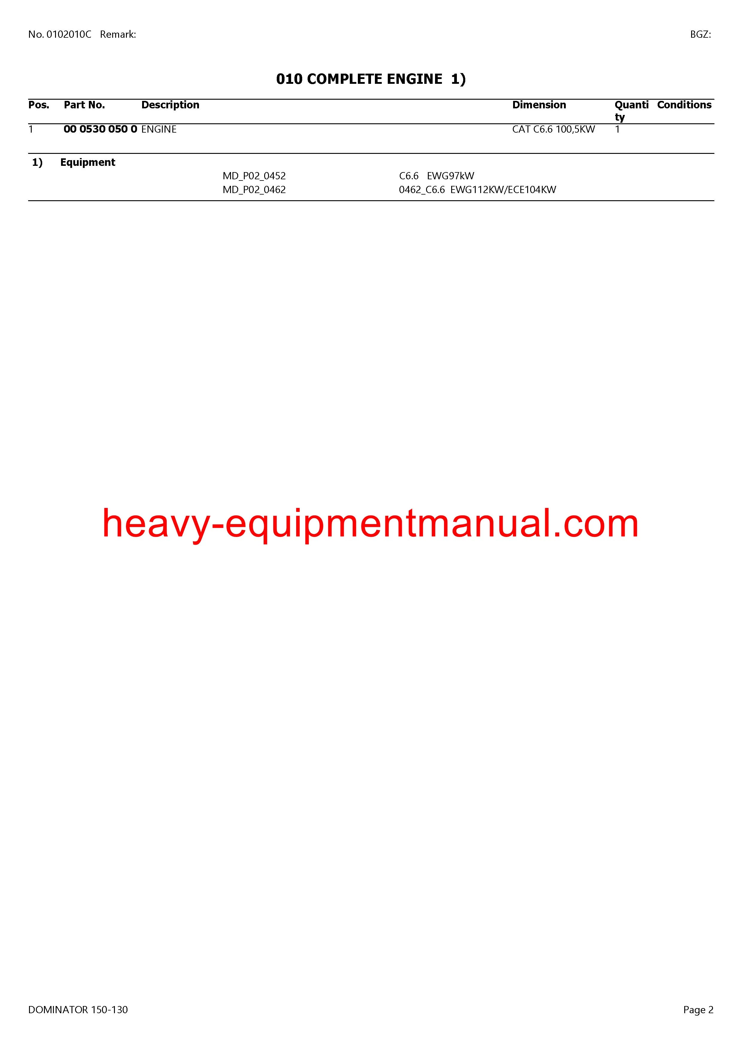 DOWNLOAD CLAAS DOMINATOR 150-130 COMBINE PARTS CATALOG MANUAL (SN: 20000011-20099999)