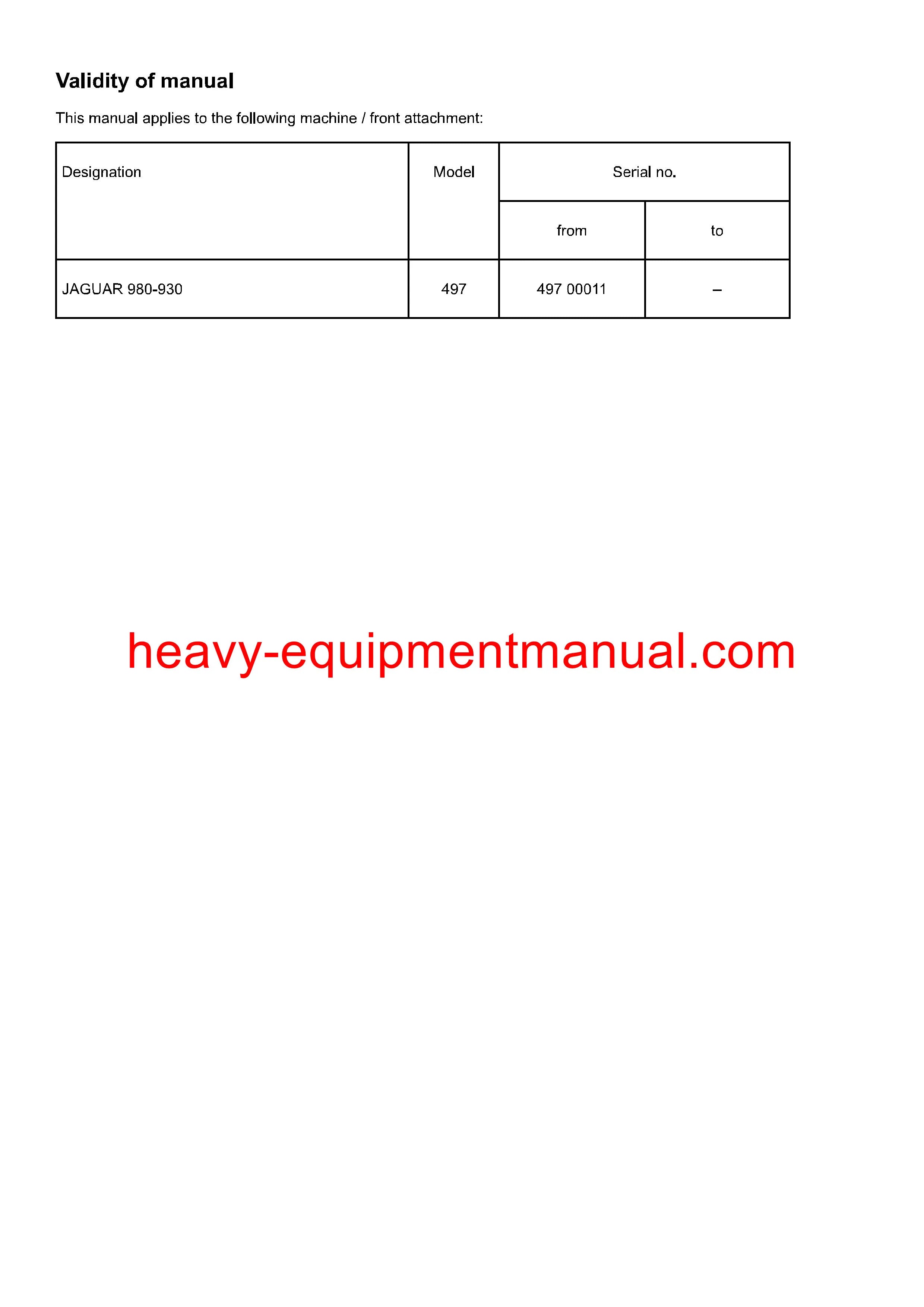 Claas Jaguar 980, 970, 960, 950, 940, 930 Forage Service Manual