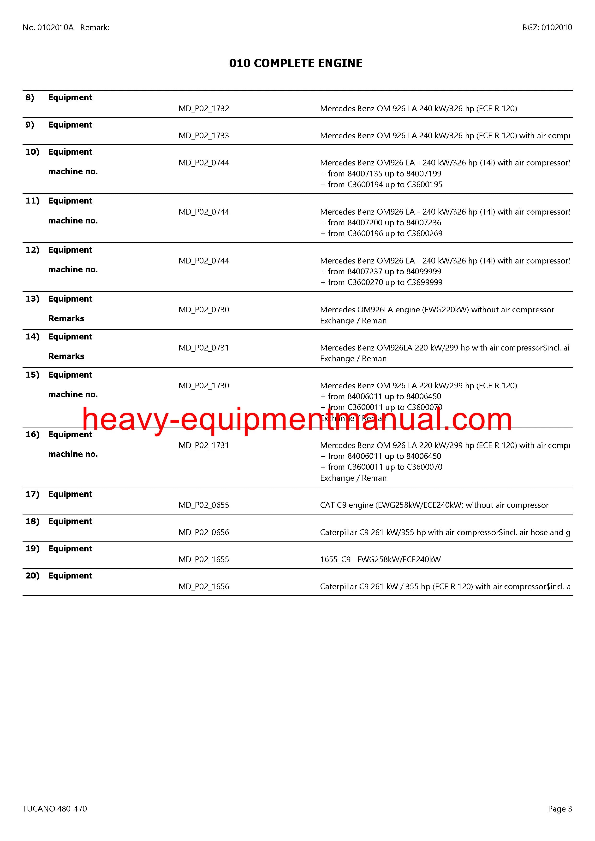CLAAS TUCANO 480-470 COMBINE PARTS CATALOG MANUAL (SN: C3600011-C3699999)