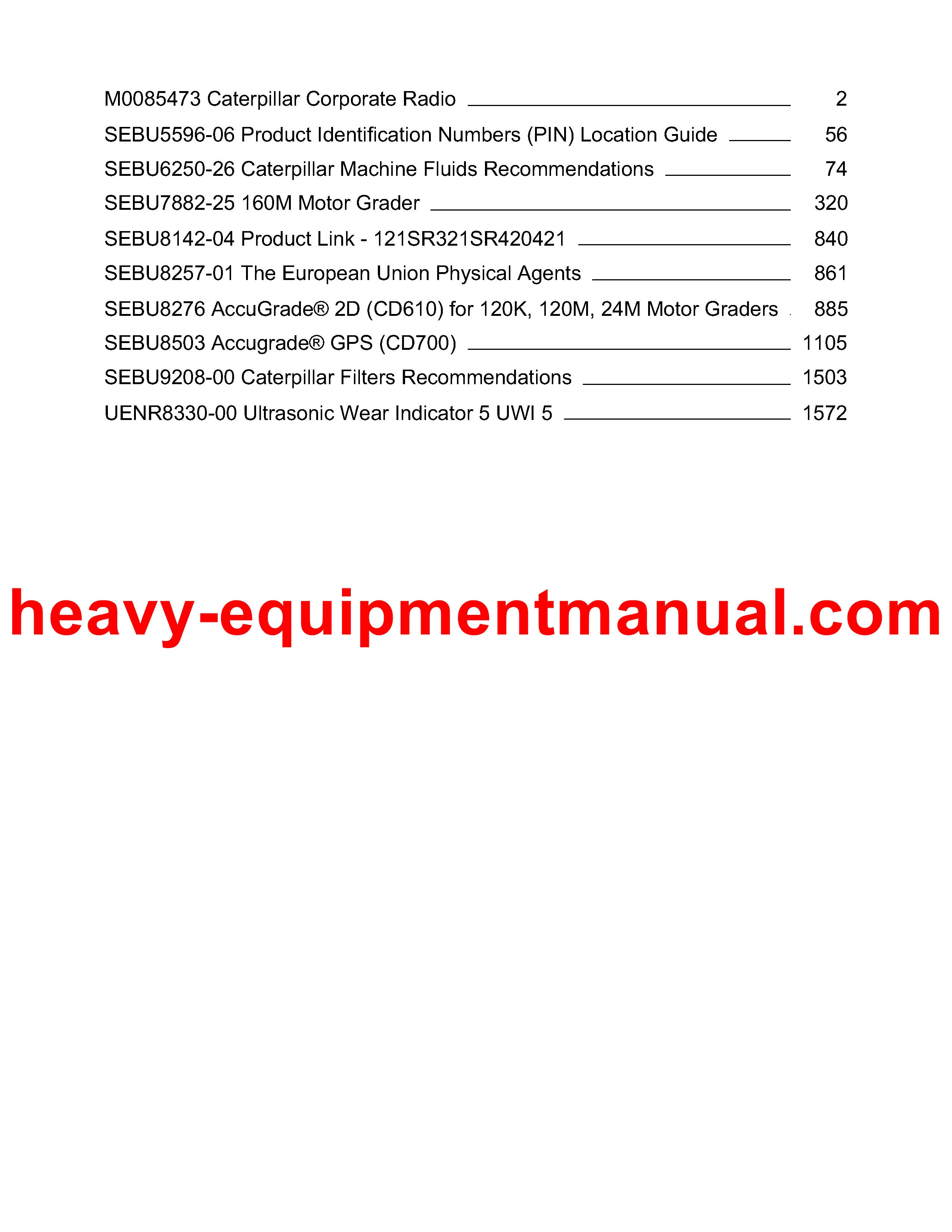 Complete Factory OPERATION AND MAINTENANCE MANUAL For CATERPILLAR 160M MOTOR GRADER. Fully Digital Version With Bookmarks Searchable Text And Salable Images.