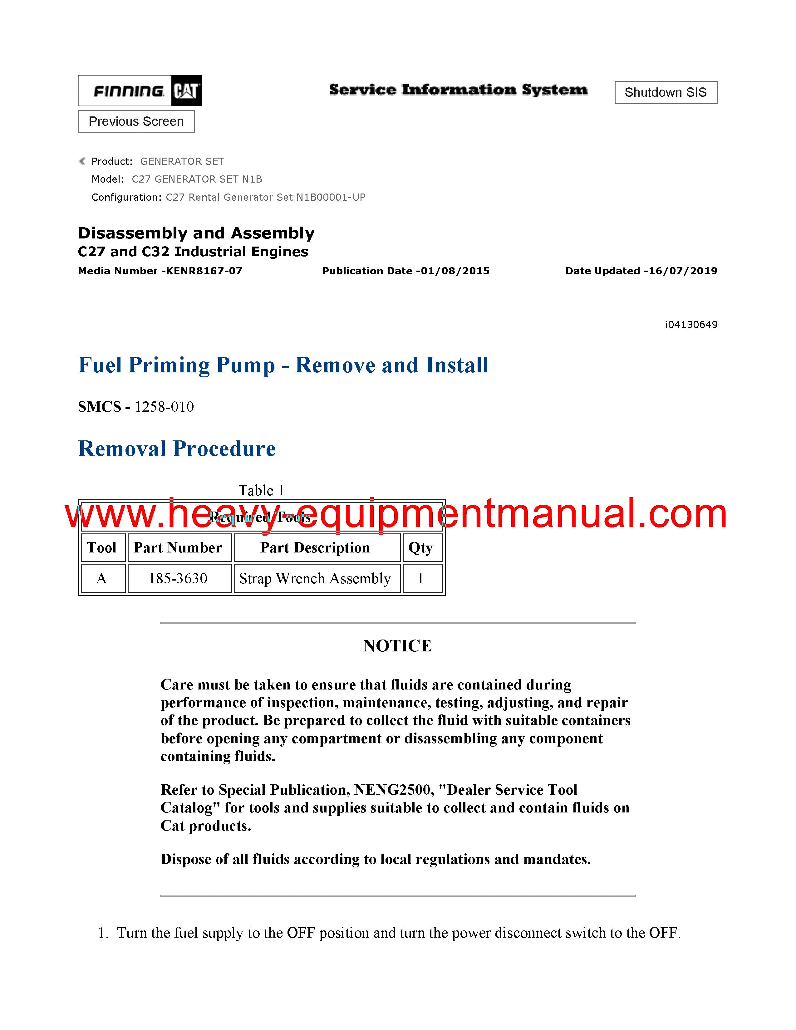 Caterpillar C27 GENERATOR SET Service Repair Manual N1B