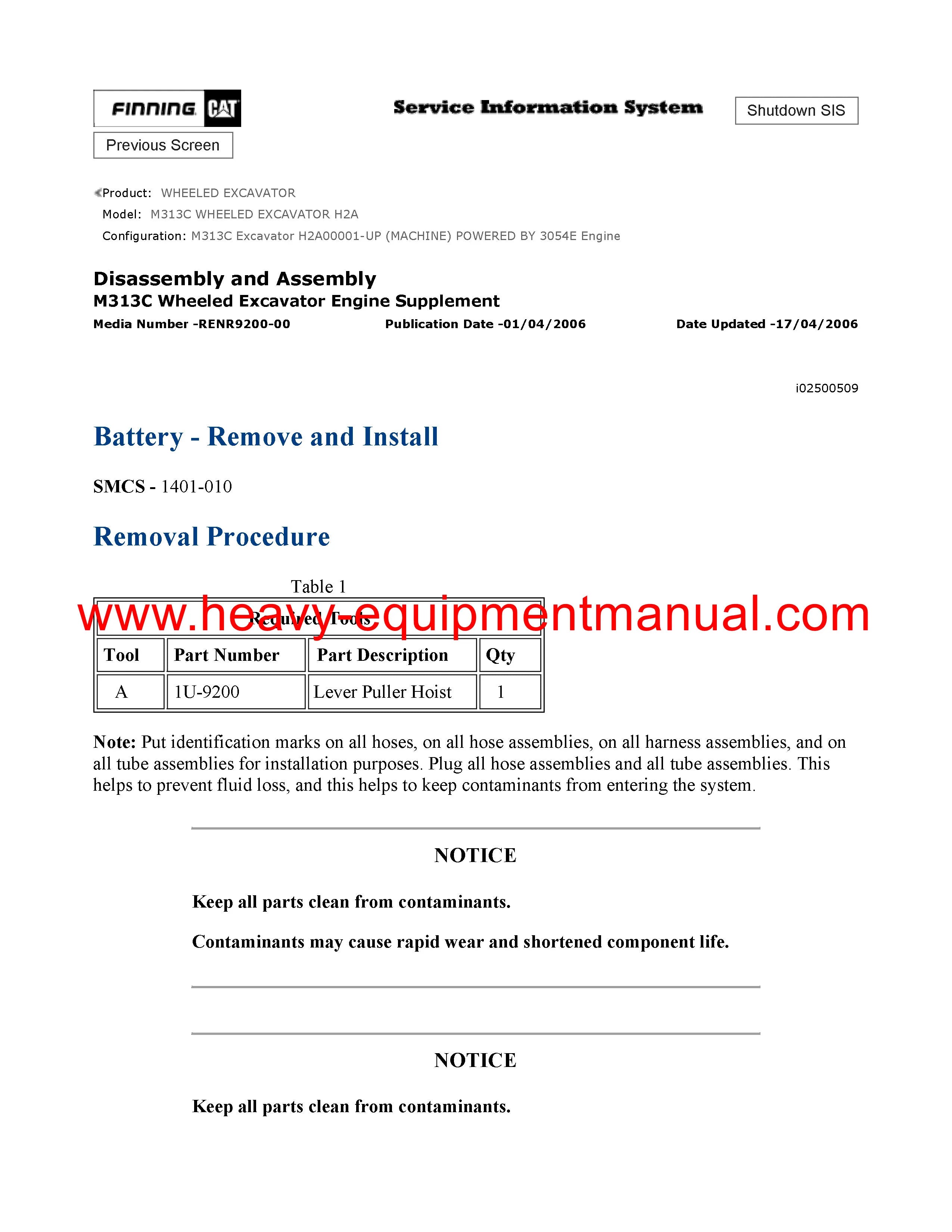 Caterpillar M313C WHEELED EXCAVATOR General Service Information Manual