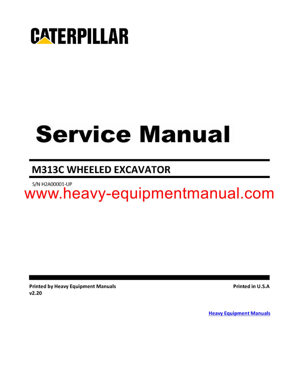 It is Complete Original Factory for Caterpillar M313C WHEELED EXCAVATOR. Covers all the service and repair information about Caterpillar M313C WHEELED EXCAVATOR. The information in this manual covers everything you need to know when you want to service and repair Caterpillar M313C WHEELED EXCAVATOR.