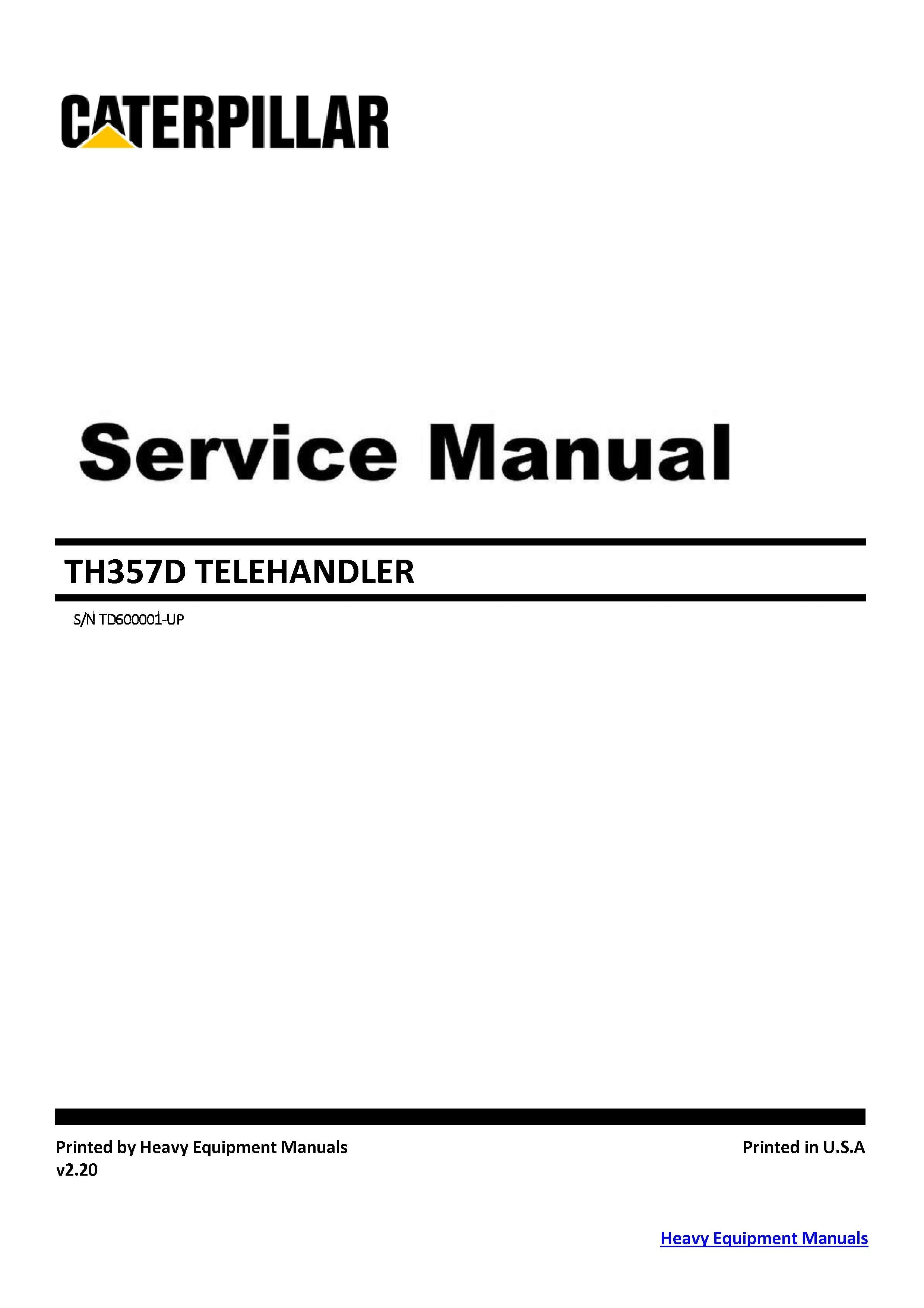 It is Complete Original Factory for Caterpillar TH357D TELEHANDLER. Covers all the service and repair information about Caterpillar TH357D TELEHANDLER. The information in this manual covers everything you need to know when you want to service and repair Caterpillar TH357D TELEHANDLER.