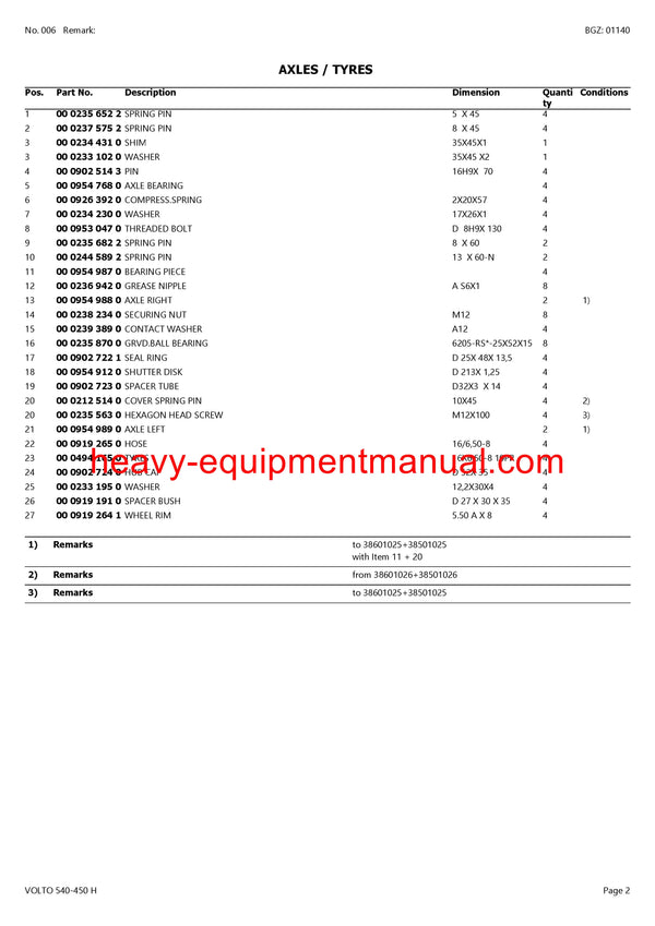 PDF Claas 540 - 450 H Volto Tedder Parts Manual