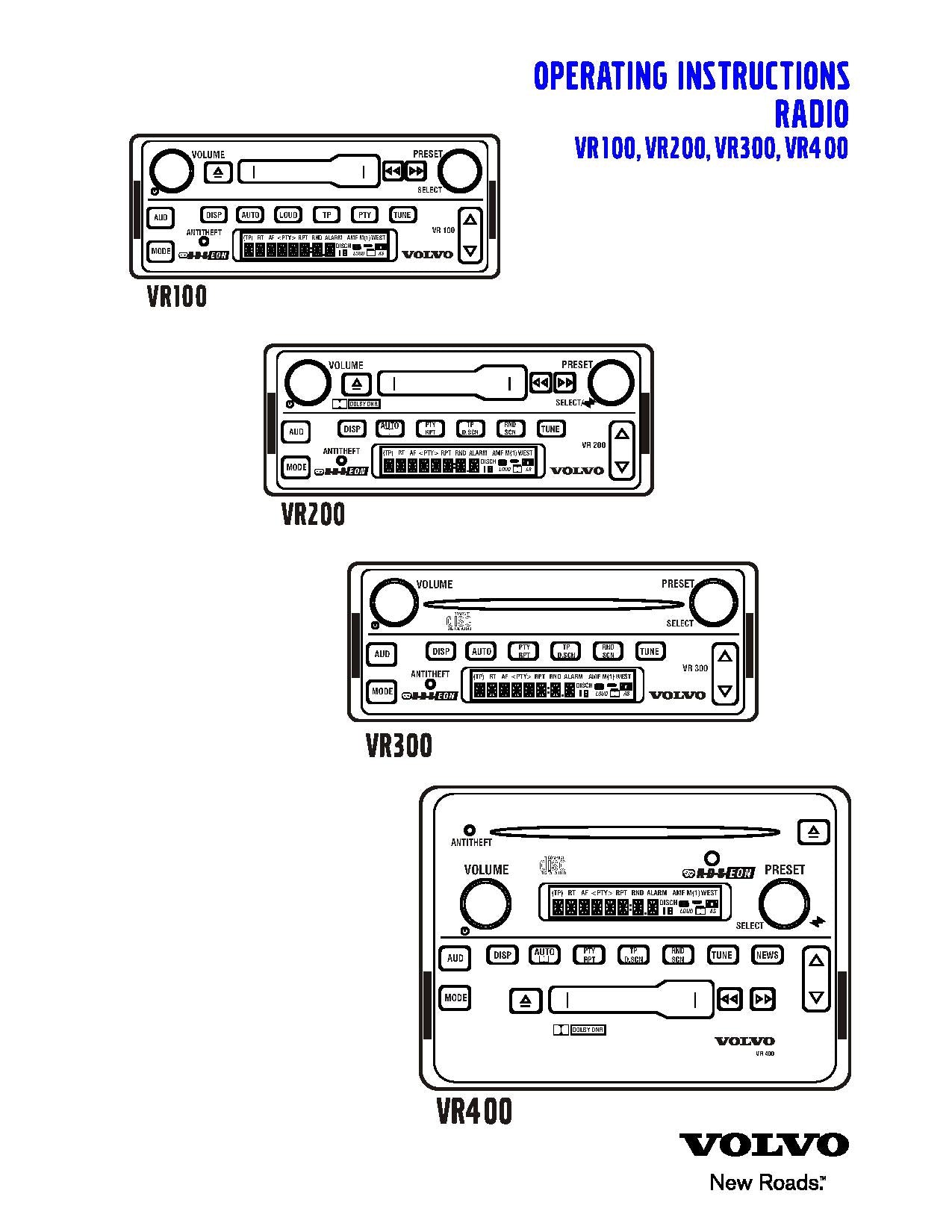 DOWNLOAD VOLVO VR100, VR200, VR300, VR400 RADIO OPERATING INSTRUCTIONS MANUAL