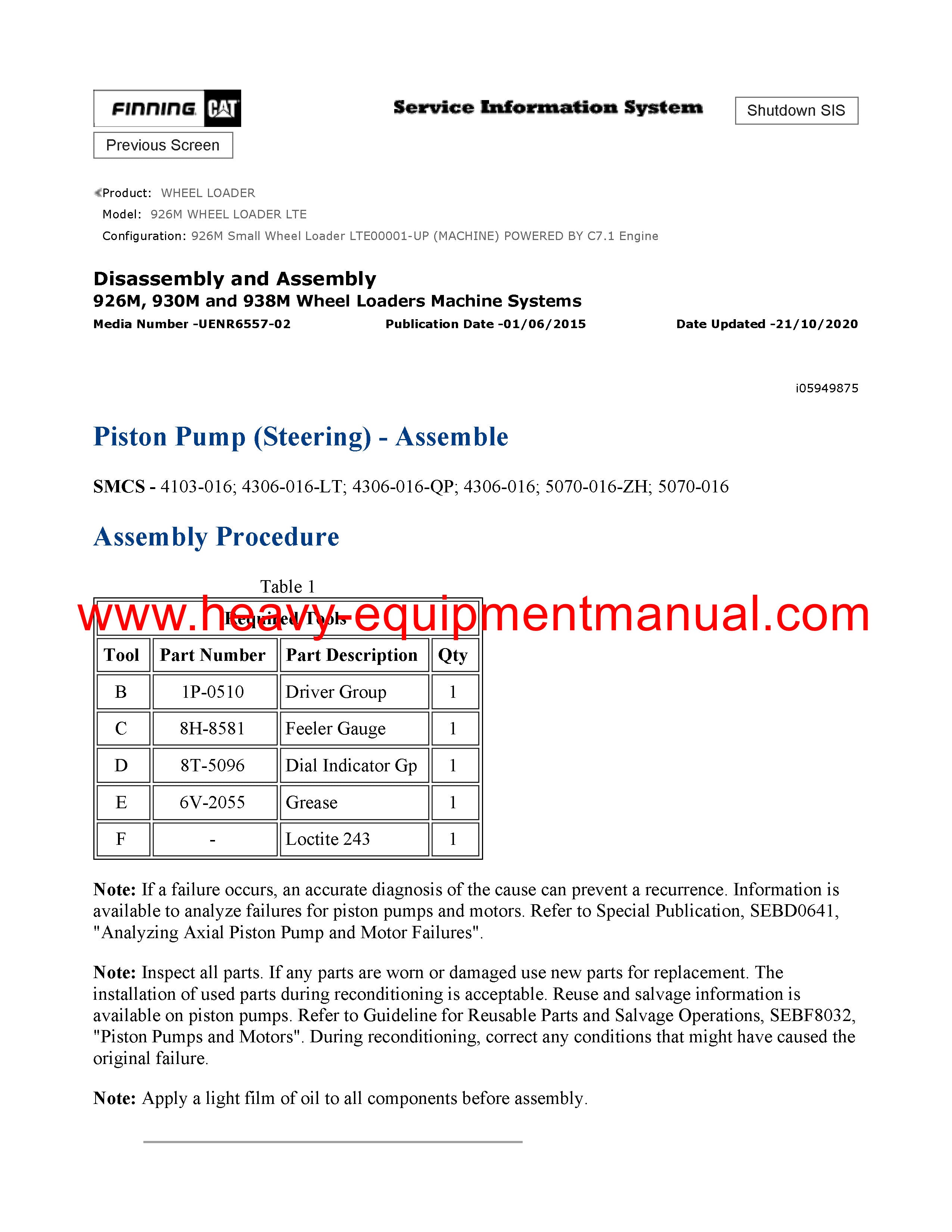 It is Complete Original Factory for Caterpillar 926M WHEEL LOADER. Covers all the service and repair information about Caterpillar 926M WHEEL LOADER. The information in this manual covers everything you need to know when you want to service and repair Caterpillar 926M WHEEL LOADER.