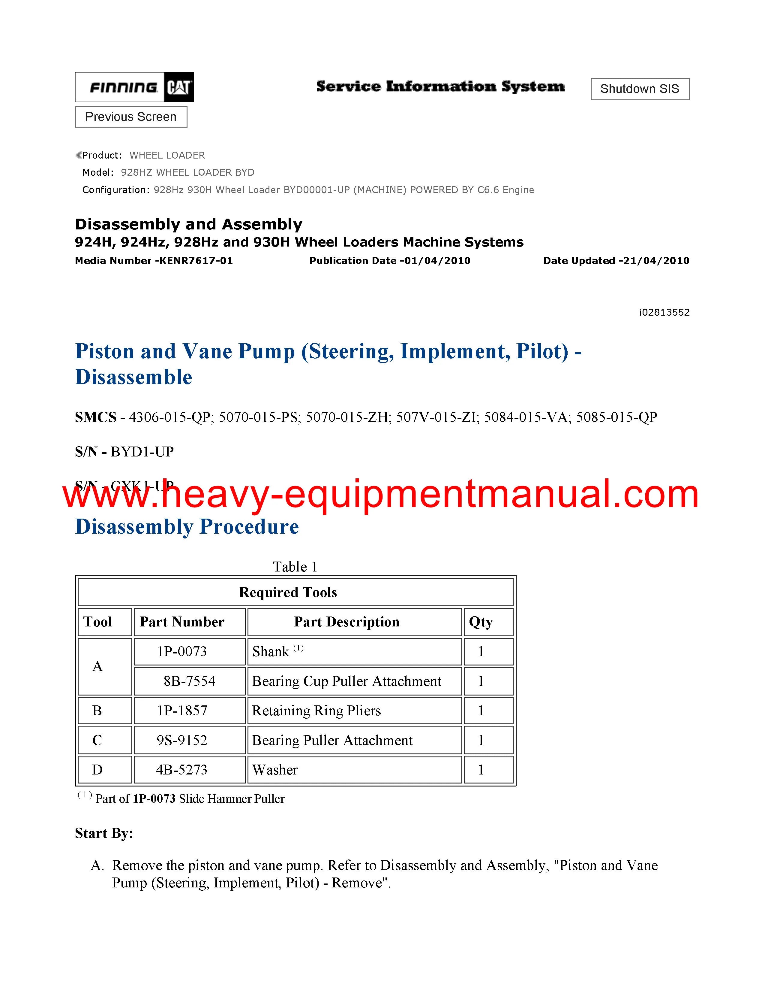 It is Complete Original Factory for Caterpillar 928HZ WHEEL LOADER. Covers all the service and repair information about Caterpillar 928HZ WHEEL LOADER. The information in this manual covers everything you need to know when you want to service and repair Caterpillar 928HZ WHEEL LOADER.