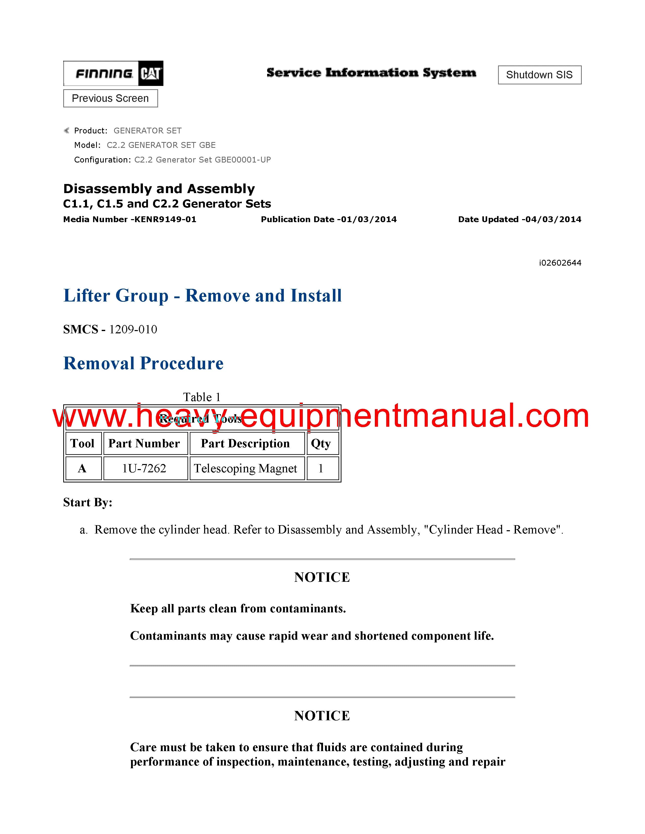 It is Complete Original Factory for Caterpillar C2.2 GENERATOR SET. Covers all the service and repair information about Caterpillar C2.2 GENERATOR SET. The information in this manual covers everything you need to know when you want to service and repair Caterpillar C2.2 GENERATOR SET.
