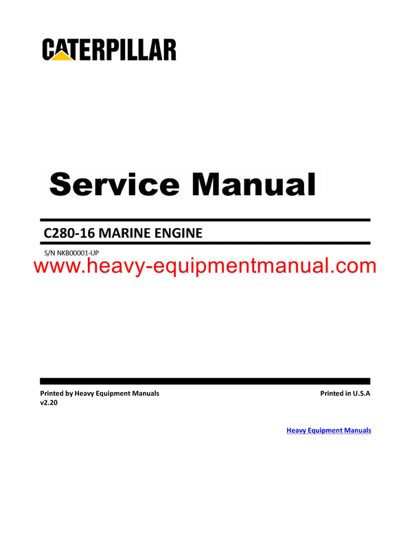 It is Complete Original Factory for Caterpillar C280-16 MARINE ENGINE. Covers all the service and repair information about Caterpillar C280-16 MARINE ENGINE. The information in this manual covers everything you need to know when you want to service and repair Caterpillar C280-16 MARINE ENGINE.
