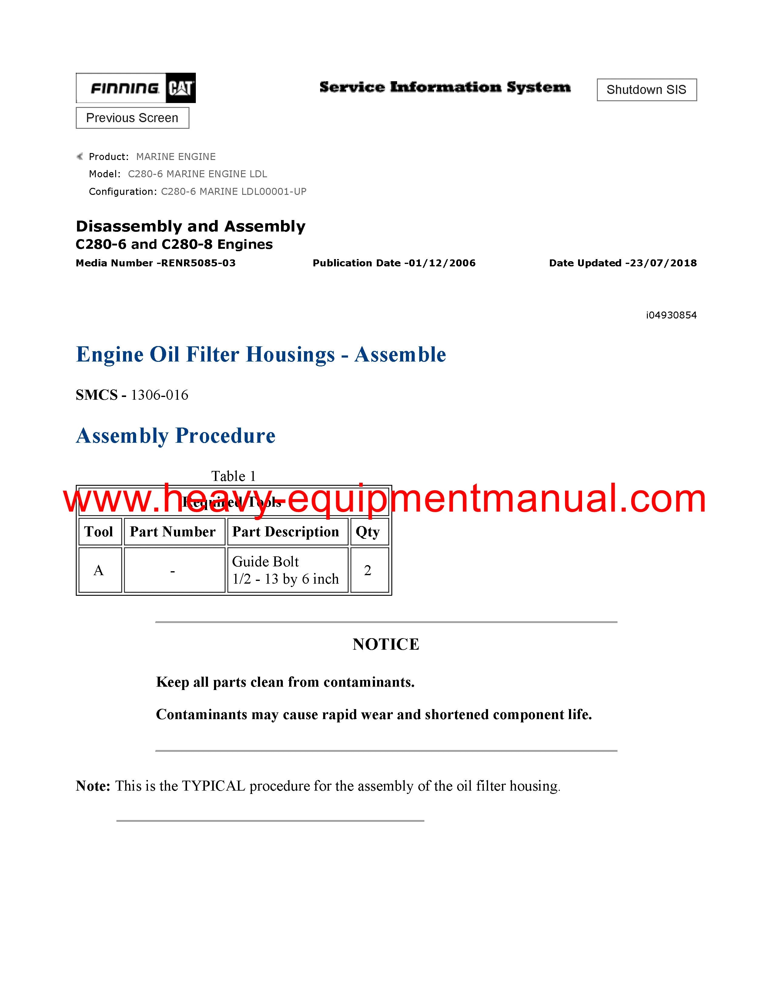 It is Complete Original Factory for Caterpillar C280-6 MARINE ENGINE. Covers all the service and repair information about Caterpillar C280-6 MARINE ENGINE. The information in this manual covers everything you need to know when you want to service and repair Caterpillar C280-6 MARINE ENGINE.
