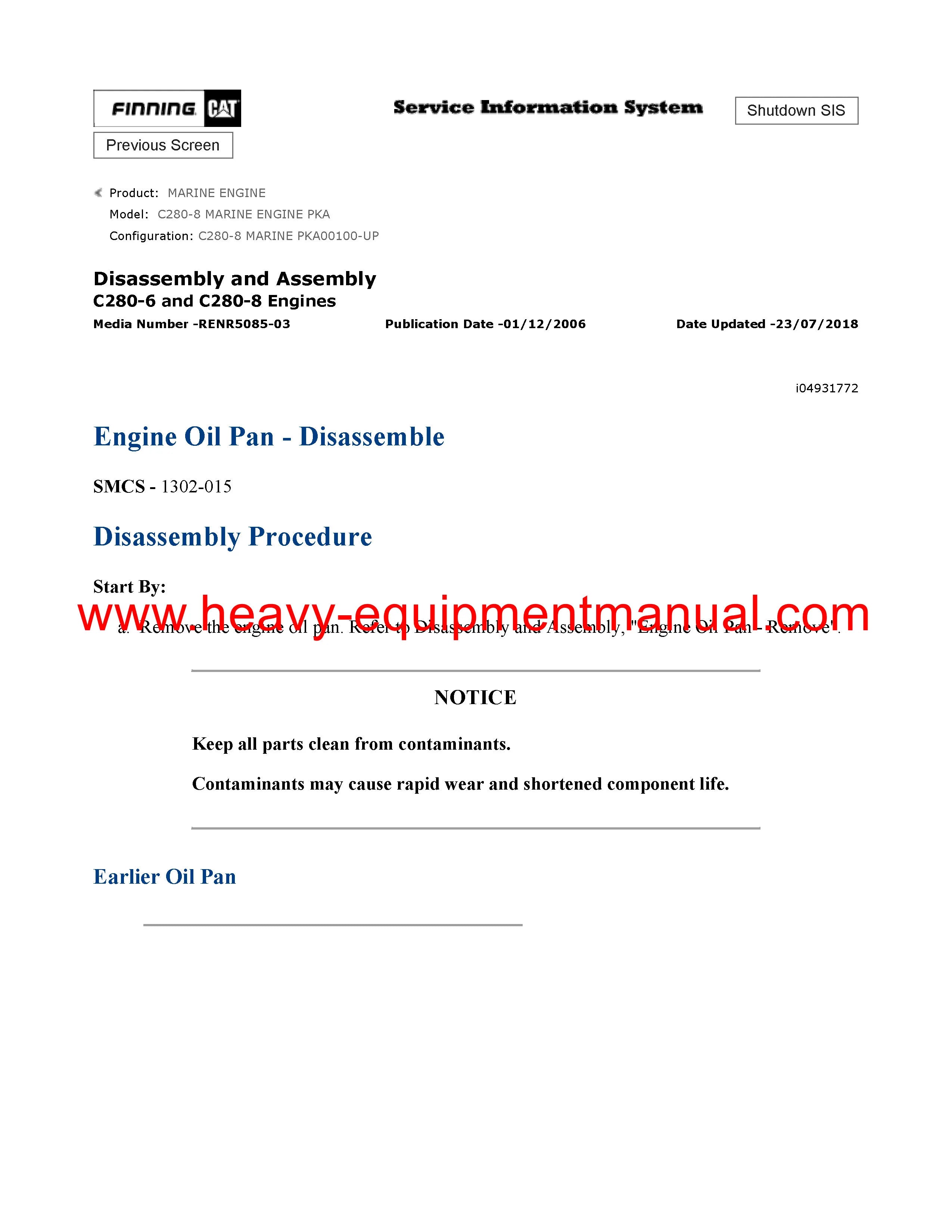 It is Complete Original Factory for Caterpillar C280-8 MARINE ENGINE. Covers all the service and repair information about Caterpillar C280-8 MARINE ENGINE. The information in this manual covers everything you need to know when you want to service and repair Caterpillar C280-8 MARINE ENGINE.