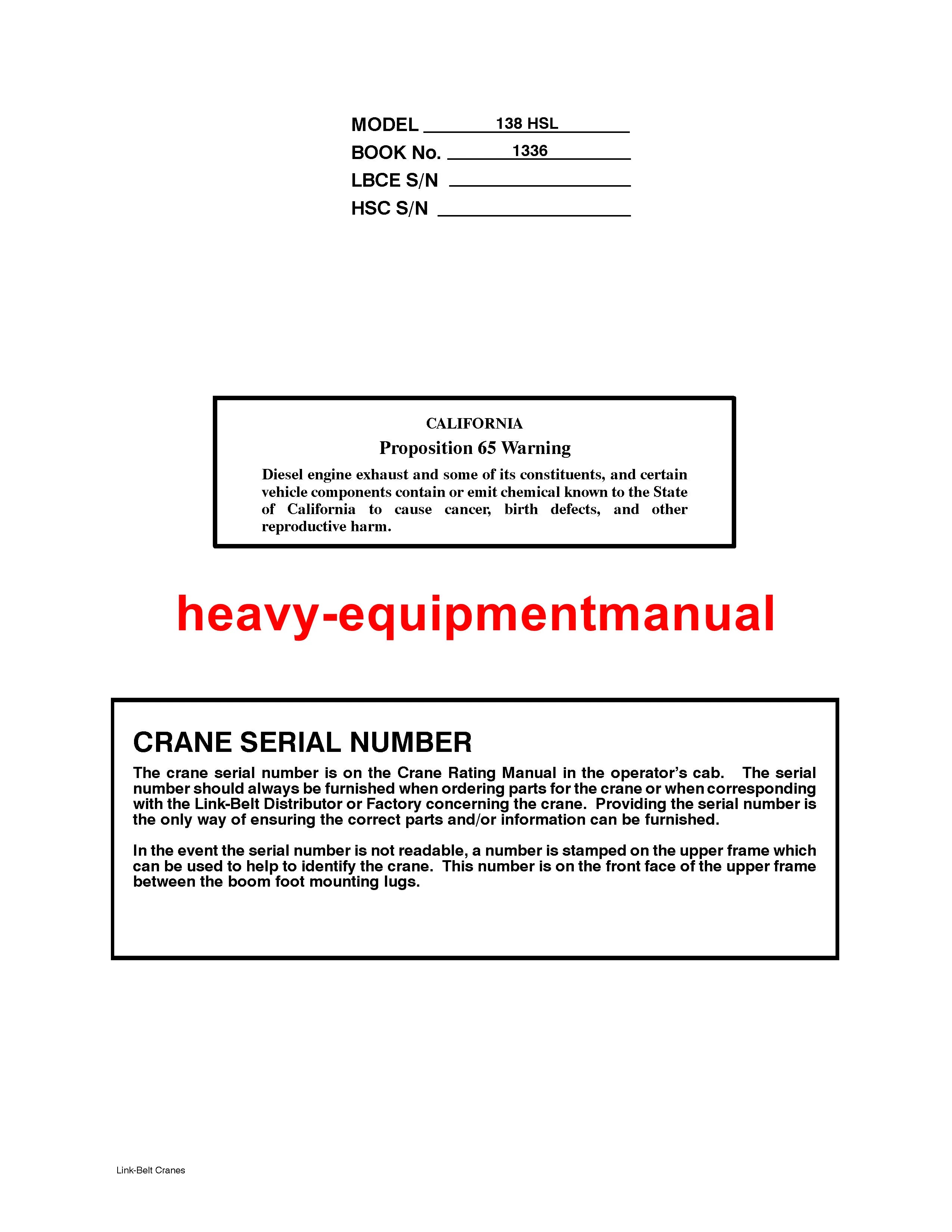 Link Belt Crane 138 HSL Official Repair Service Manual