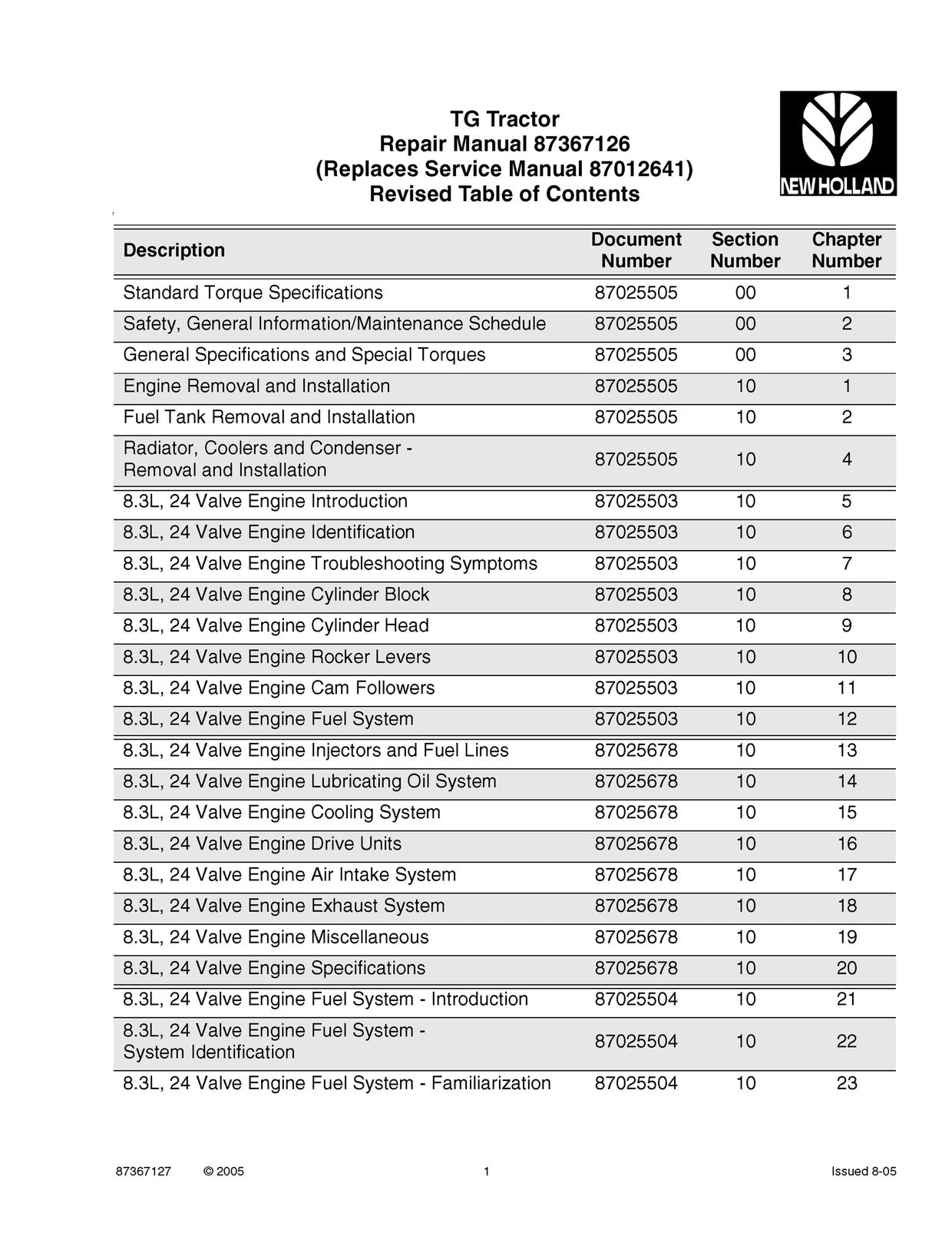 It is Complete Original Factory for New Holland TG210 TG230 TG255 TG285 Tractors. Covers all the service and repair information about New Holland TG210 TG230 TG255 TG285 Tractors. The information in this manual covers everything you need to know when you want to service and repair New Holland TG210 TG230 TG255 TG285 Tractors.