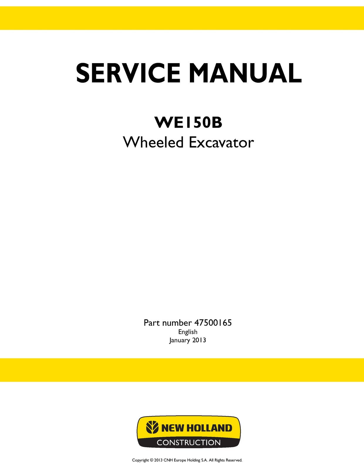 It is Complete Original Factory for New Holland WE150B Wheeled Excavator. Covers all the service and repair information about New Holland WE150B Wheeled Excavator. The information in this manual covers everything you need to know when you want to service and repair New Holland WE150B Wheeled Excavator.
