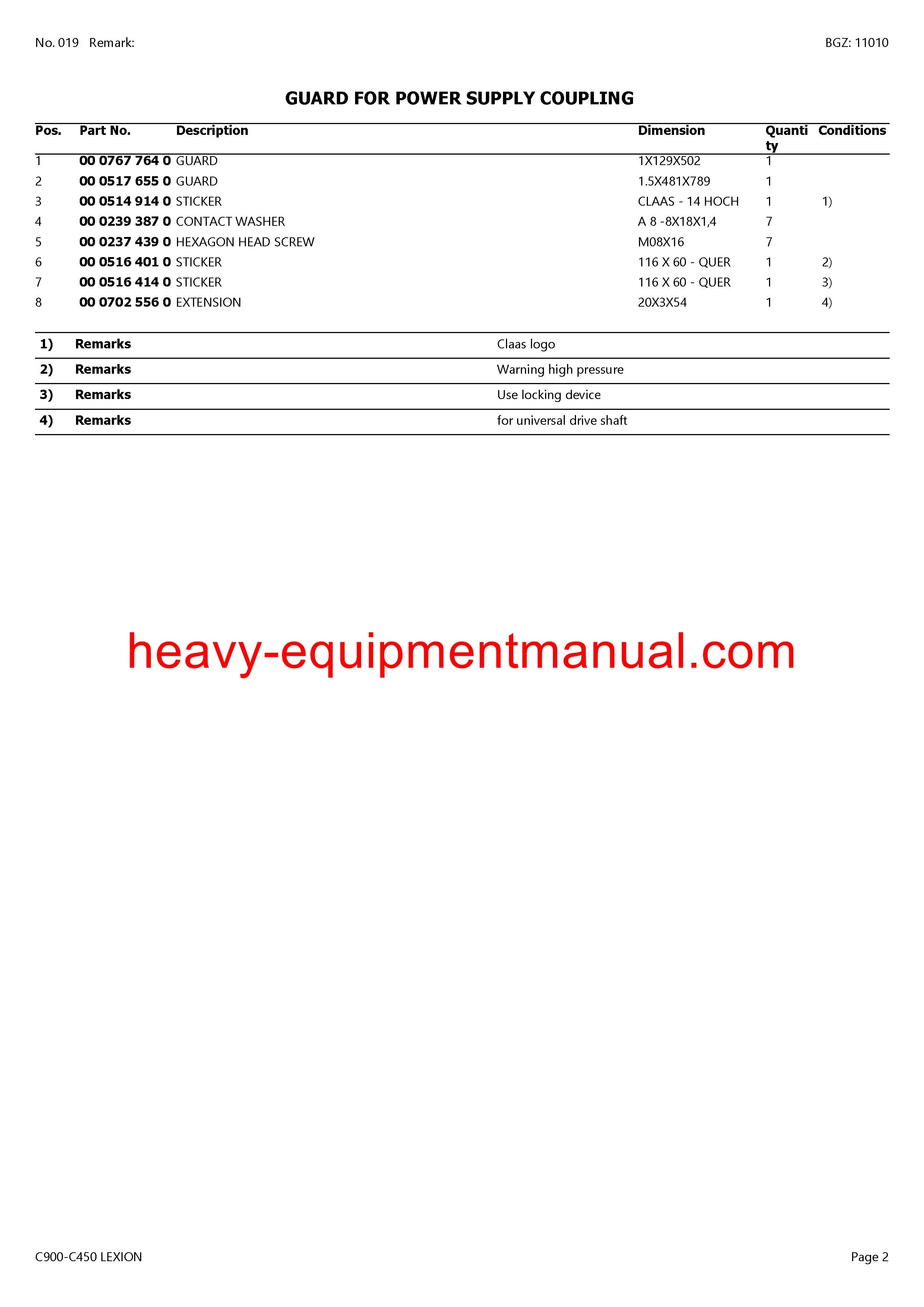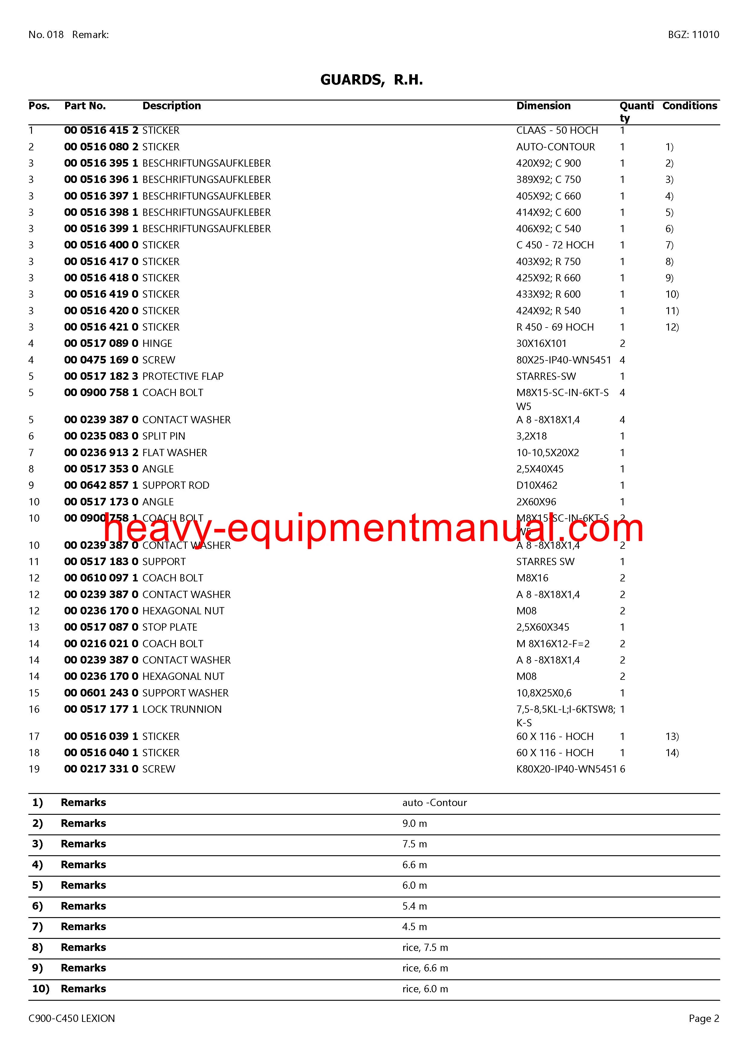 Download Claas C900-C450 Lexion Cutterbar Parts Manual SN D0200011-D0299999