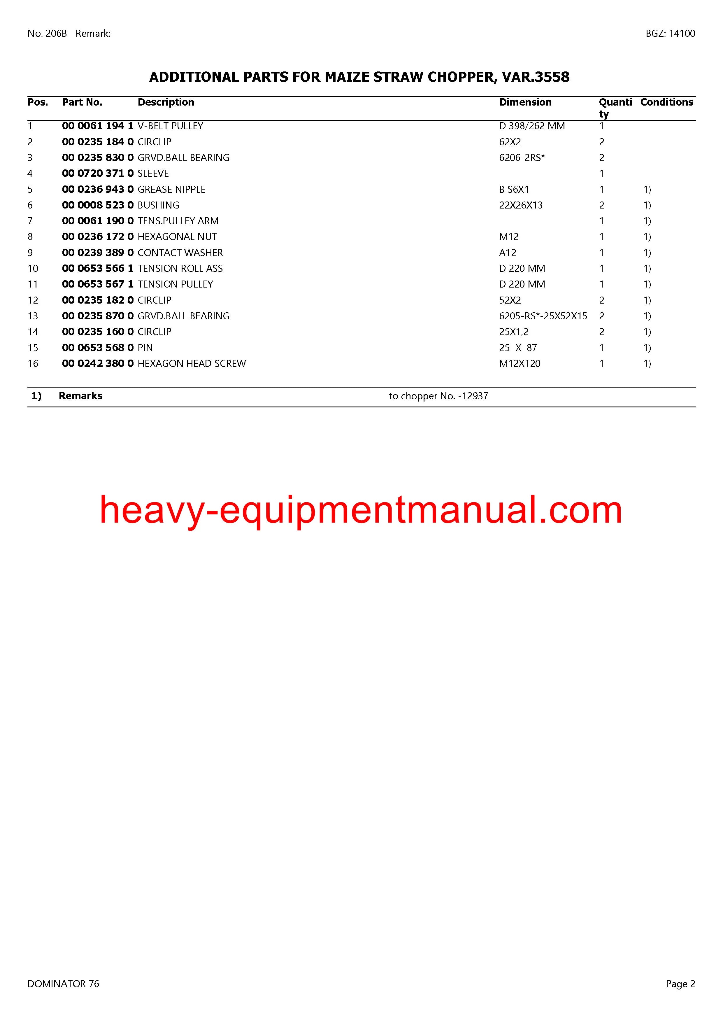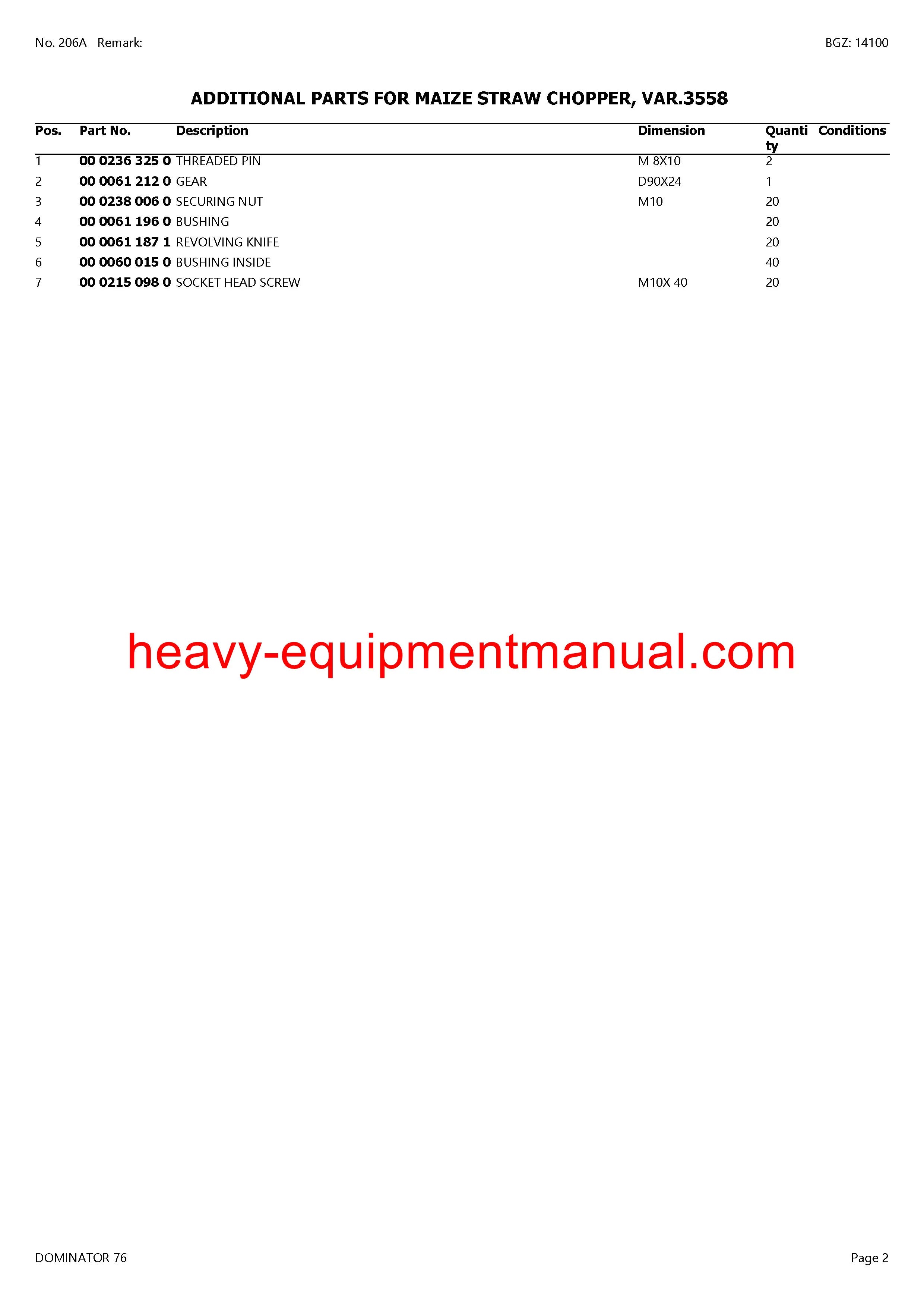 DOWNLOAD CLAAS DOMINATOR 76 COMBINE PARTS CATALOG MANUAL (SN: 08400011-08499999)
