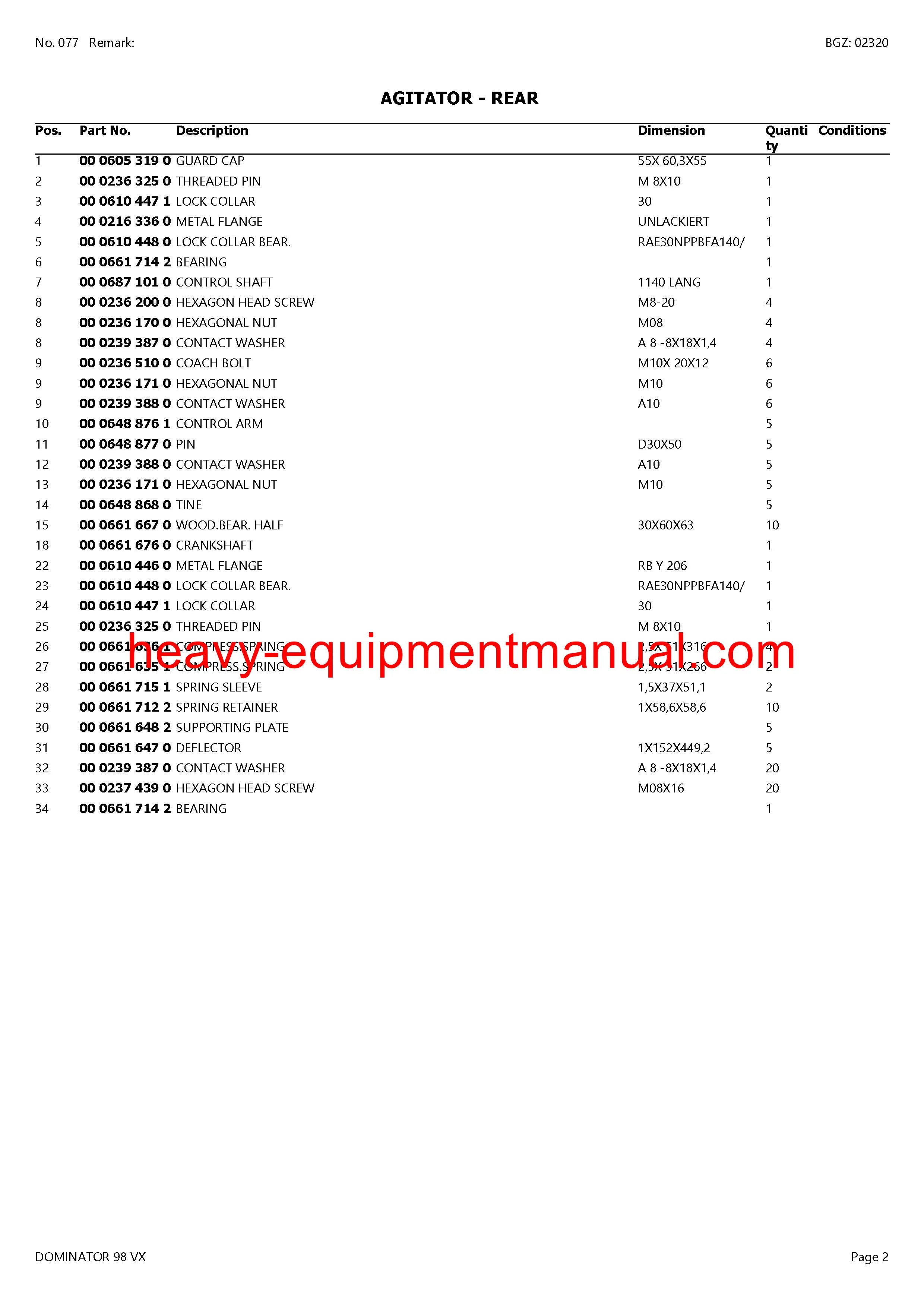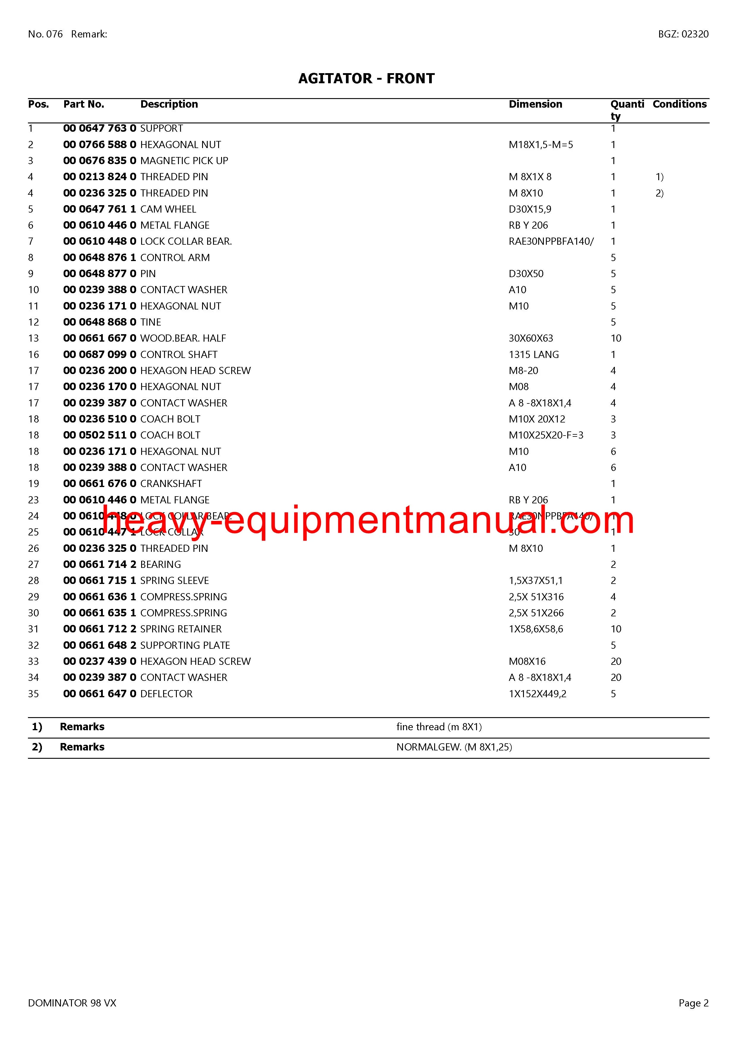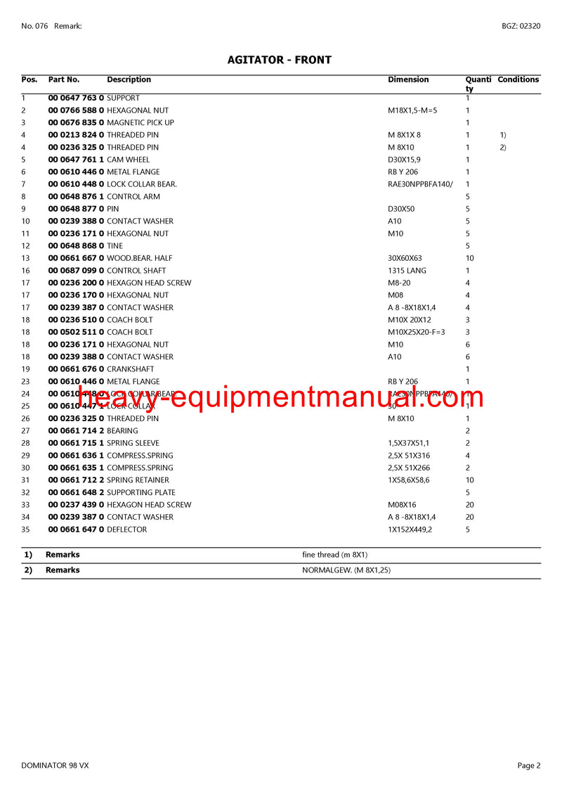 DOWNLOAD CLAAS DOMINATOR 98 VX COMBINE PARTS CATALOG MANUAL
