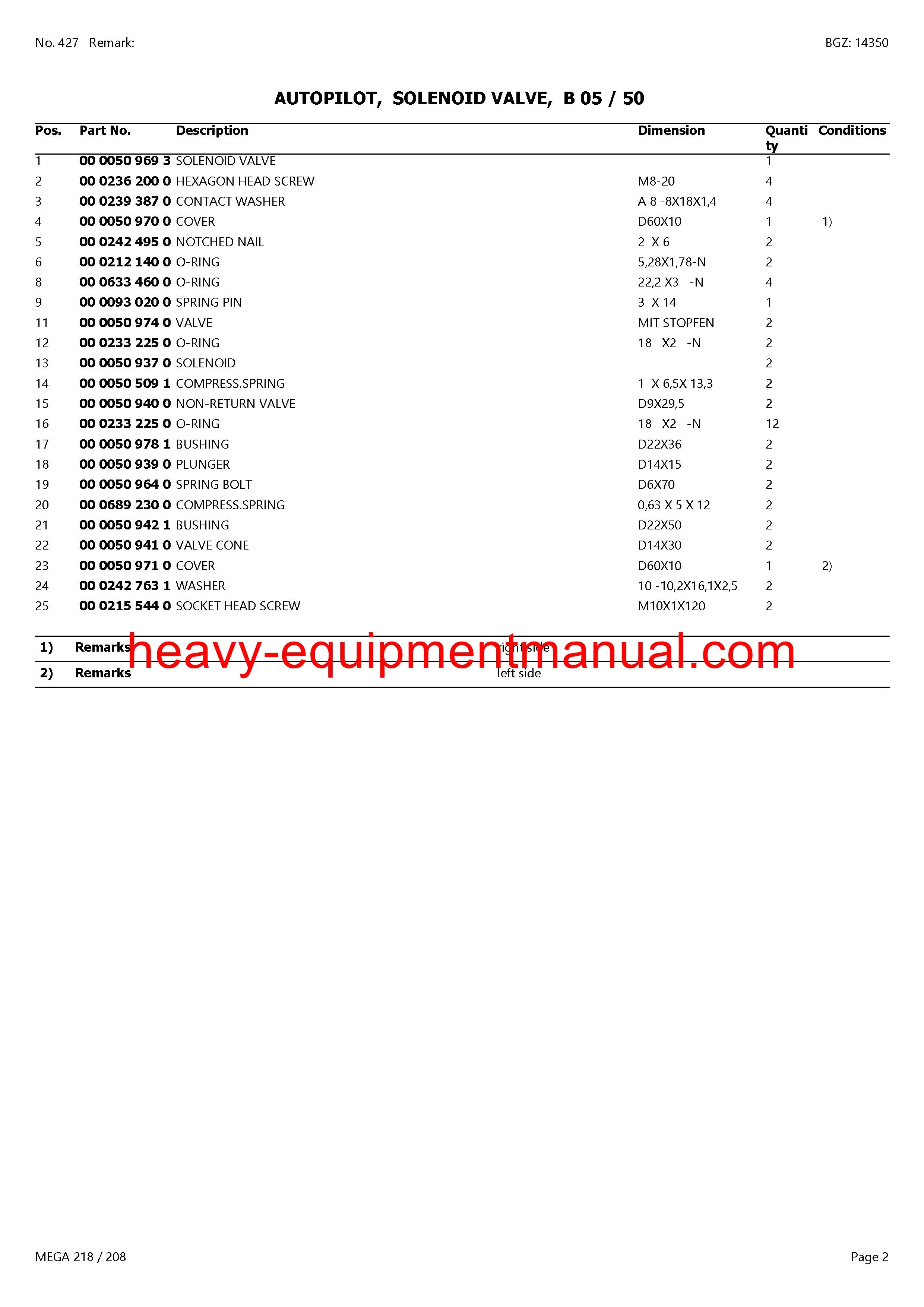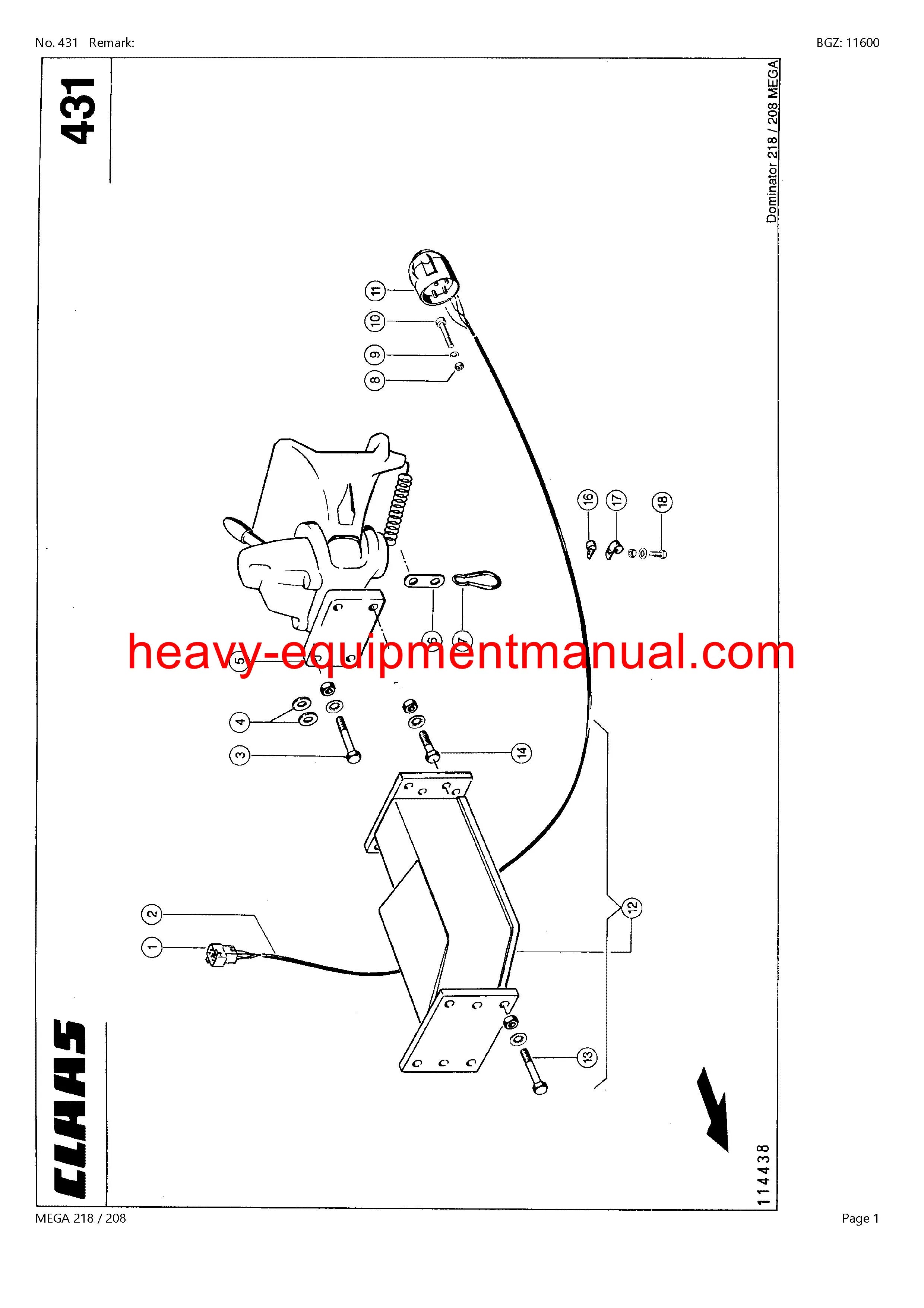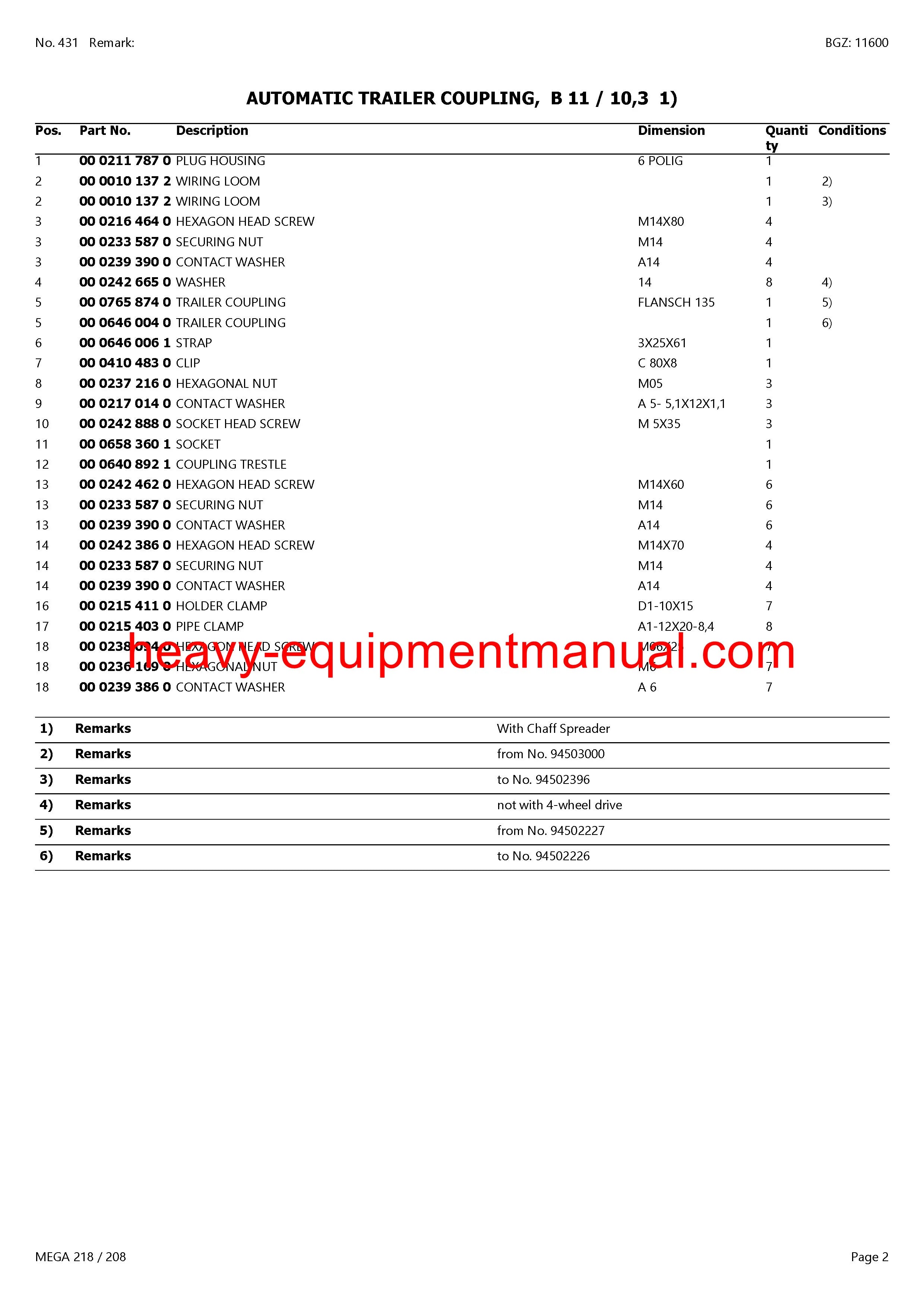 DOWNLOAD CLAAS MEGA 218/208 COMBINE PARTS CATALOG MANUAL (SN: 09450011-09499999)