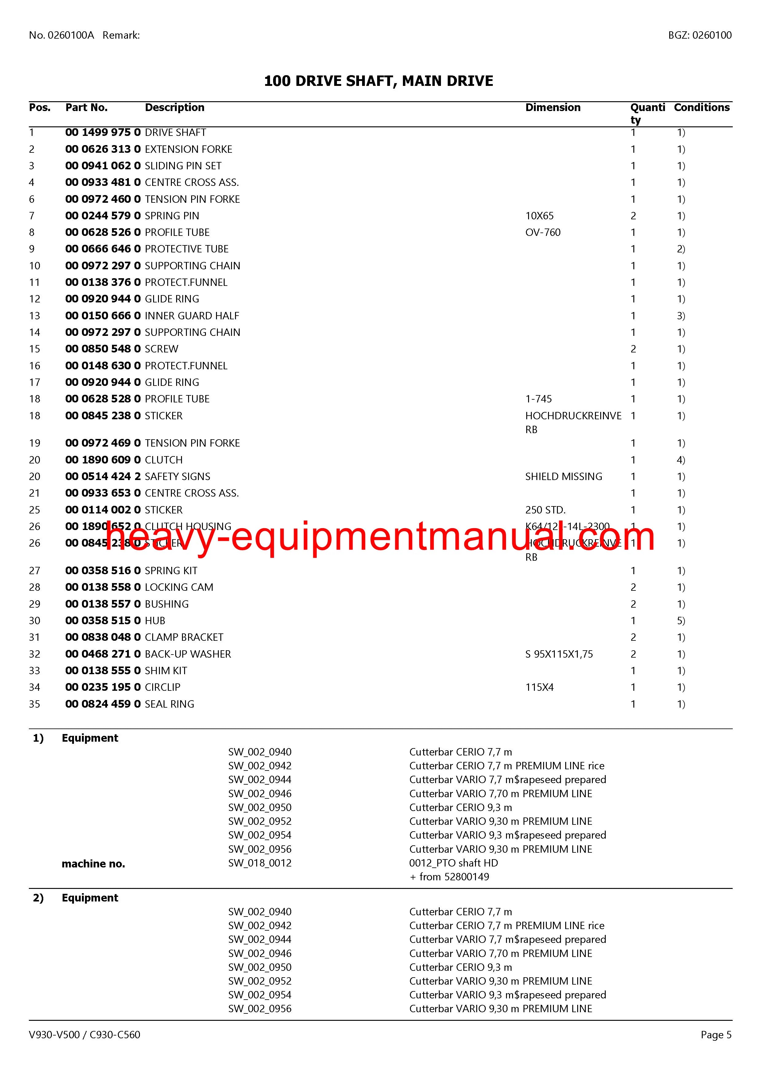 DOWNLOAD CLAAS V930-V500 / C930-C560 CUTTERBAR PARTS CATALOG MANUAL (SN: D0600011-D0699999)