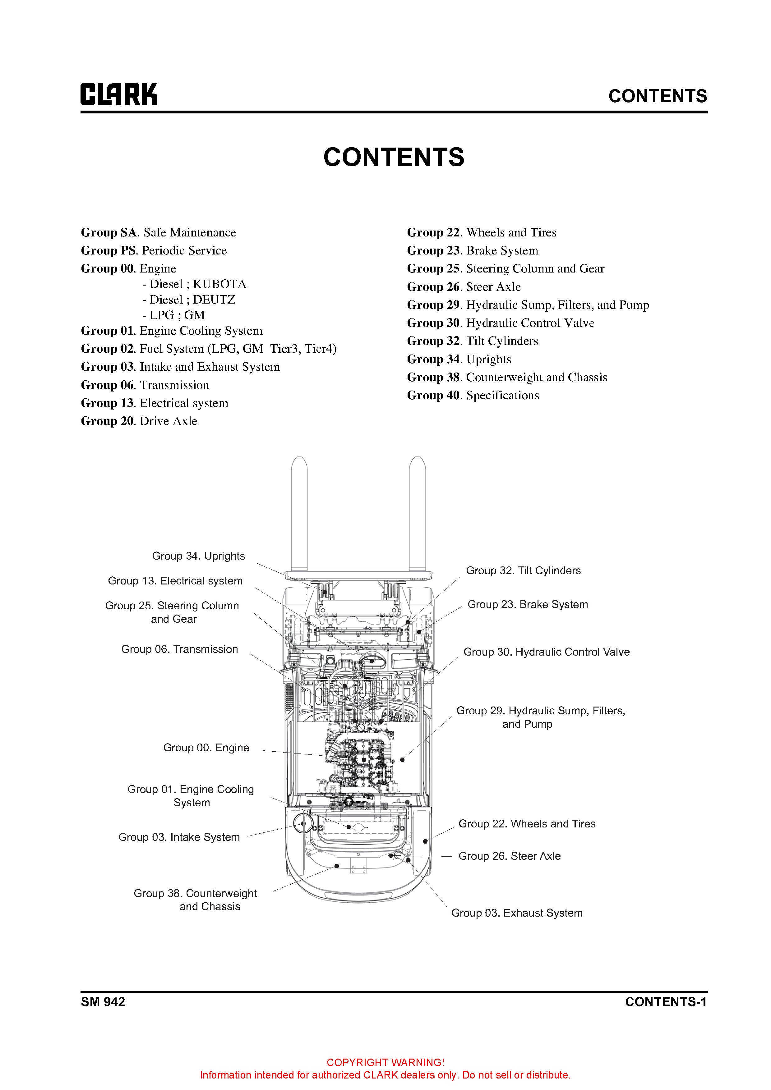Get Instant Clark SM-942 Forklift Service Repair Manual - Download PDF
