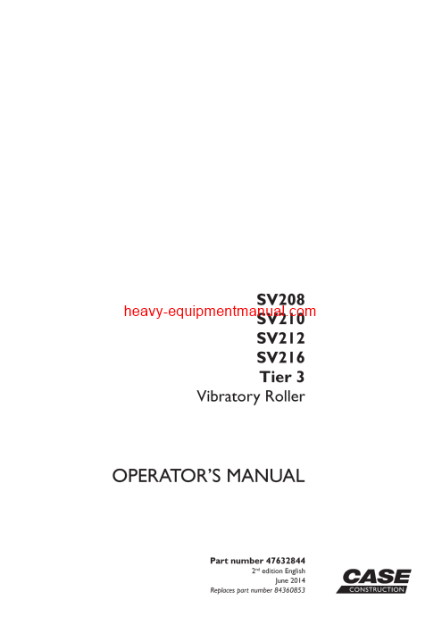Download Case SV208, SV210, SV212, SV216 Tier 3 Vibratory Roller Operator Manual (47632844)