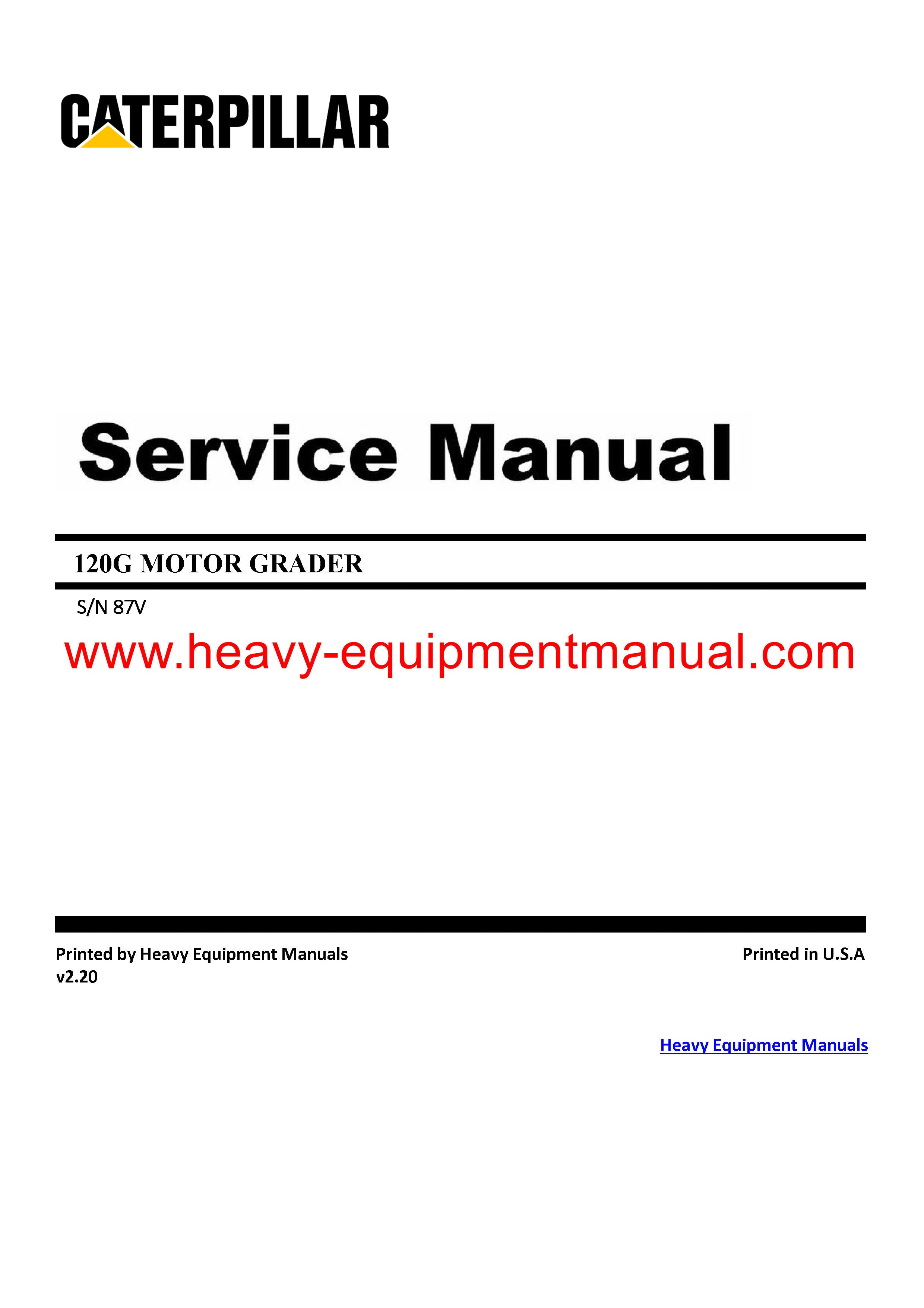 It is Complete Original Factory for Caterpillar 120G MOTOR GRADER. Covers all the service and repair information about Caterpillar 120G MOTOR GRADER. The information in this manual covers everything you need to know when you want to service and repair Caterpillar 120G MOTOR GRADER.