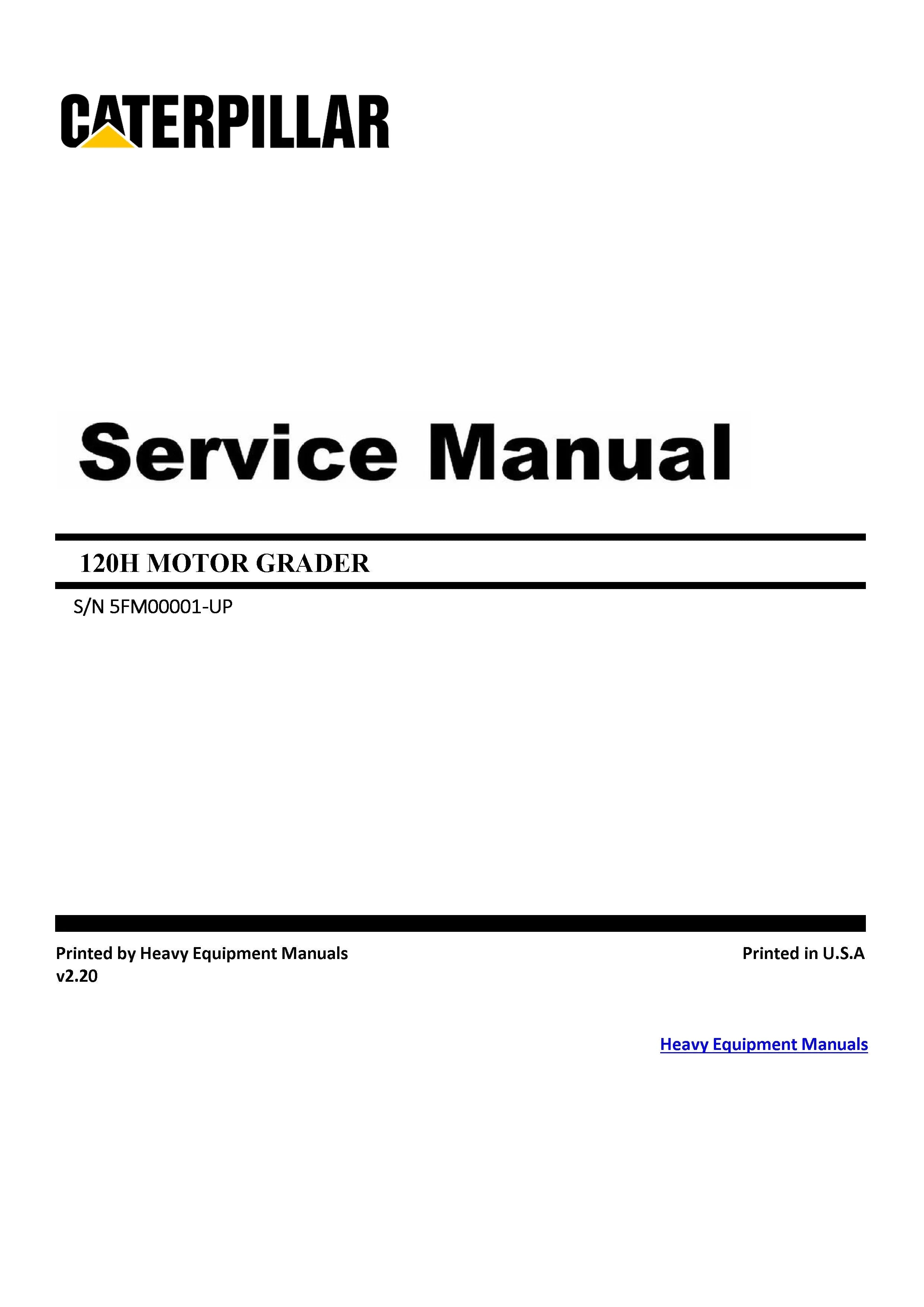It is Complete Original Factory for Caterpillar 120H MOTOR GRADER. Covers all the service and repair information about Caterpillar 120H MOTOR GRADER. The information in this manual covers everything you need to know when you want to service and repair Caterpillar 120H MOTOR GRADER.