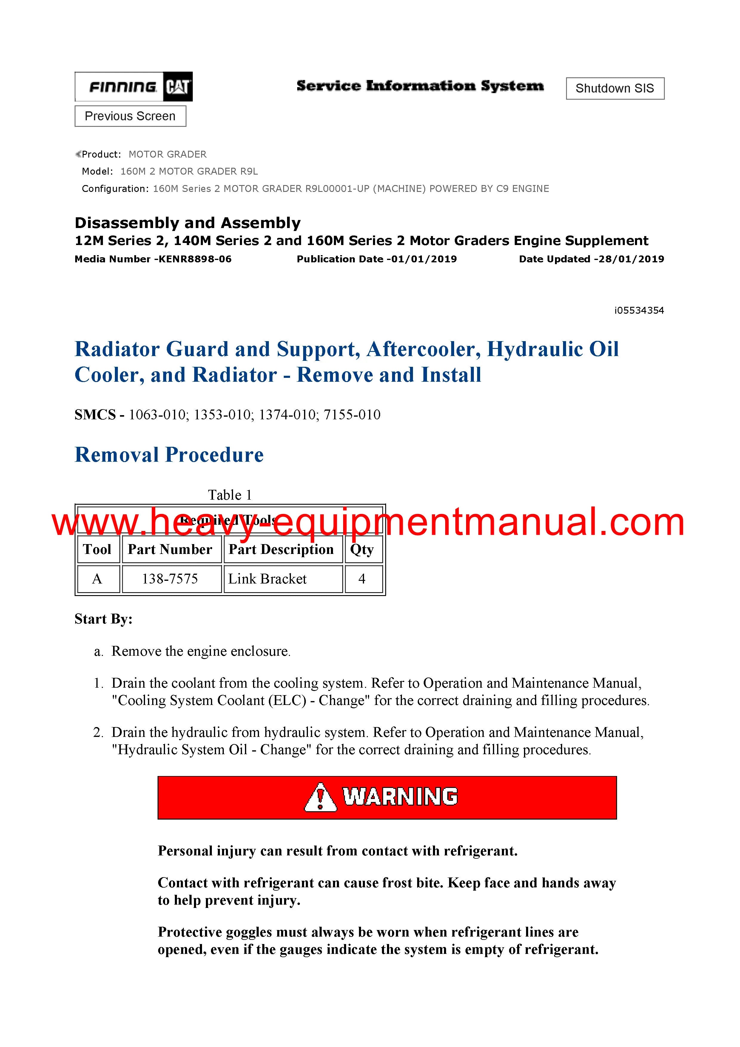 Caterpillar 160M 2 MOTOR GRADER General Service Information