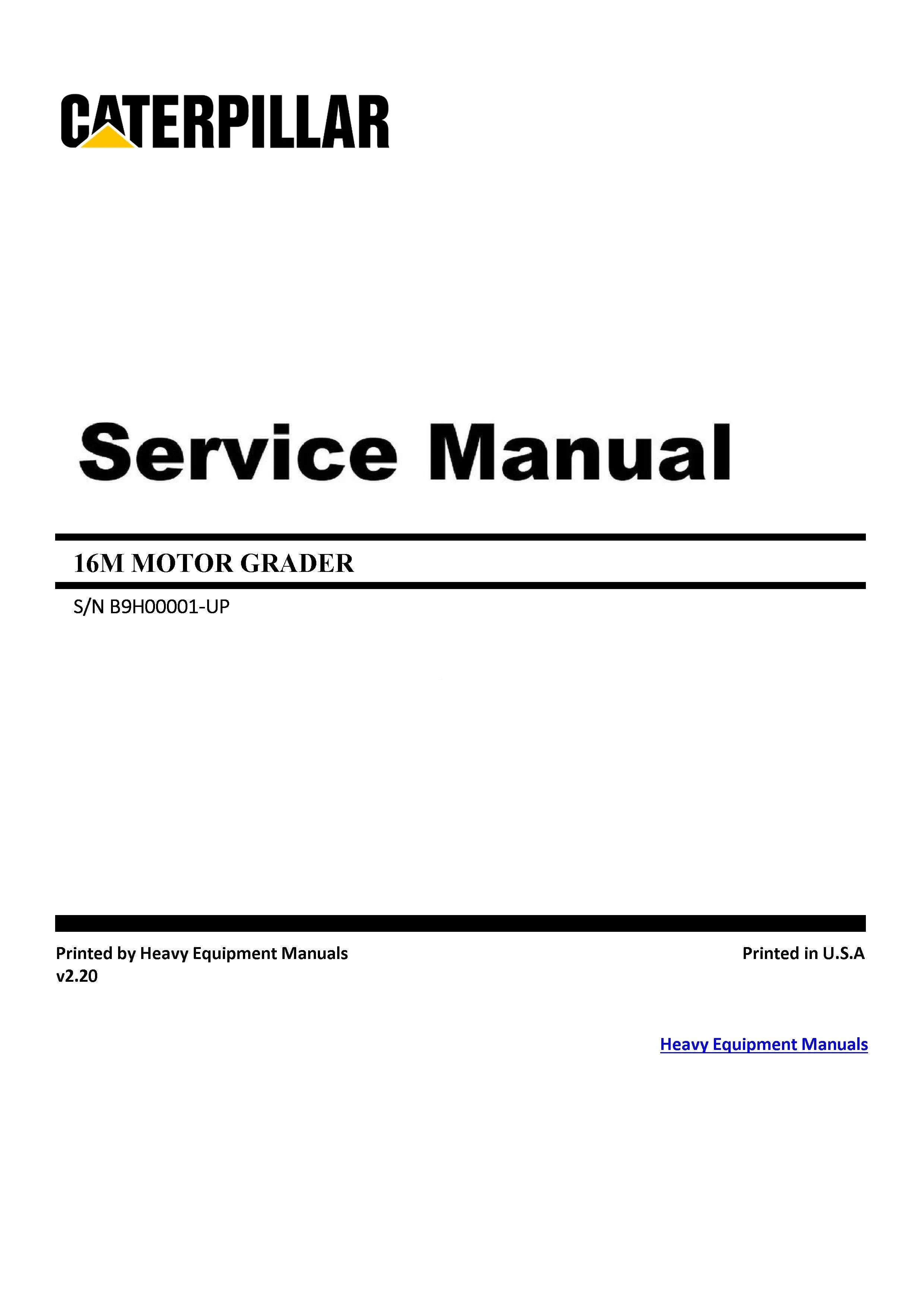 Caterpillar 16M MOTOR GRADER Service Repair Manual B9H Download